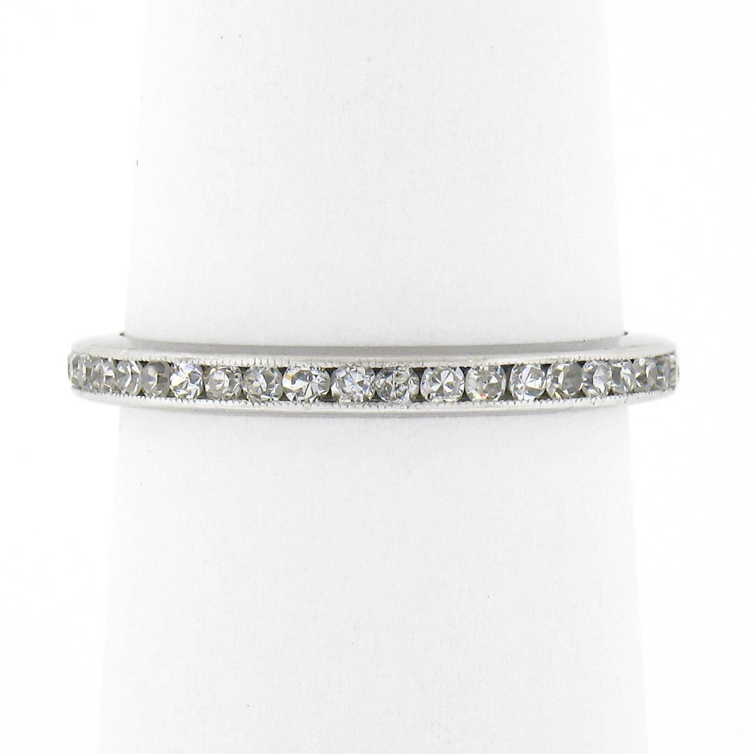 An antique solid platinum eternity band ring, with numerous of old single cut natural diamonds (G/H - VS2/I1 ; 0.68ctw). The ring is size 6.5, weighs a total of 2.05 grams, and measures 2.3mm wide.