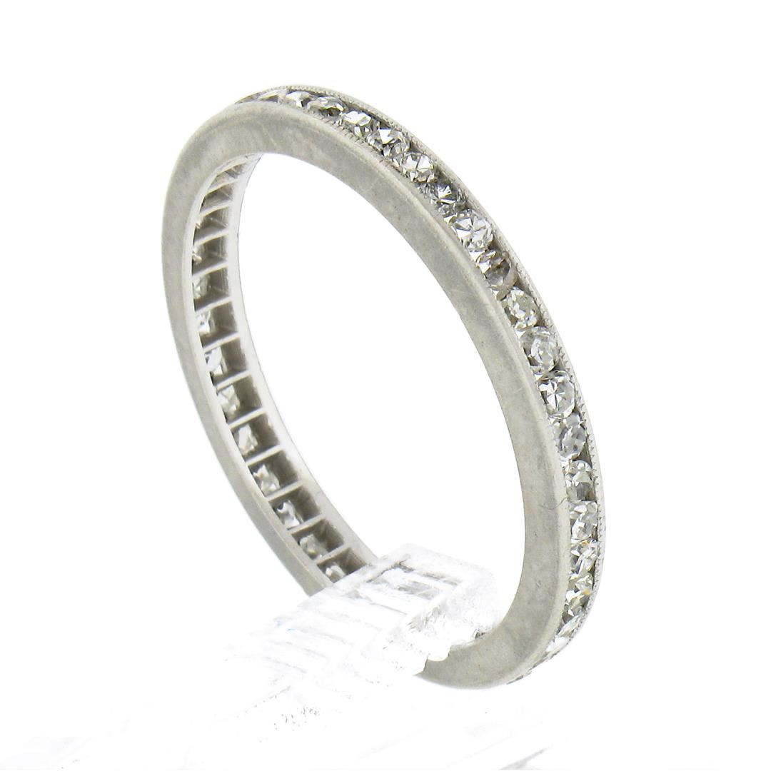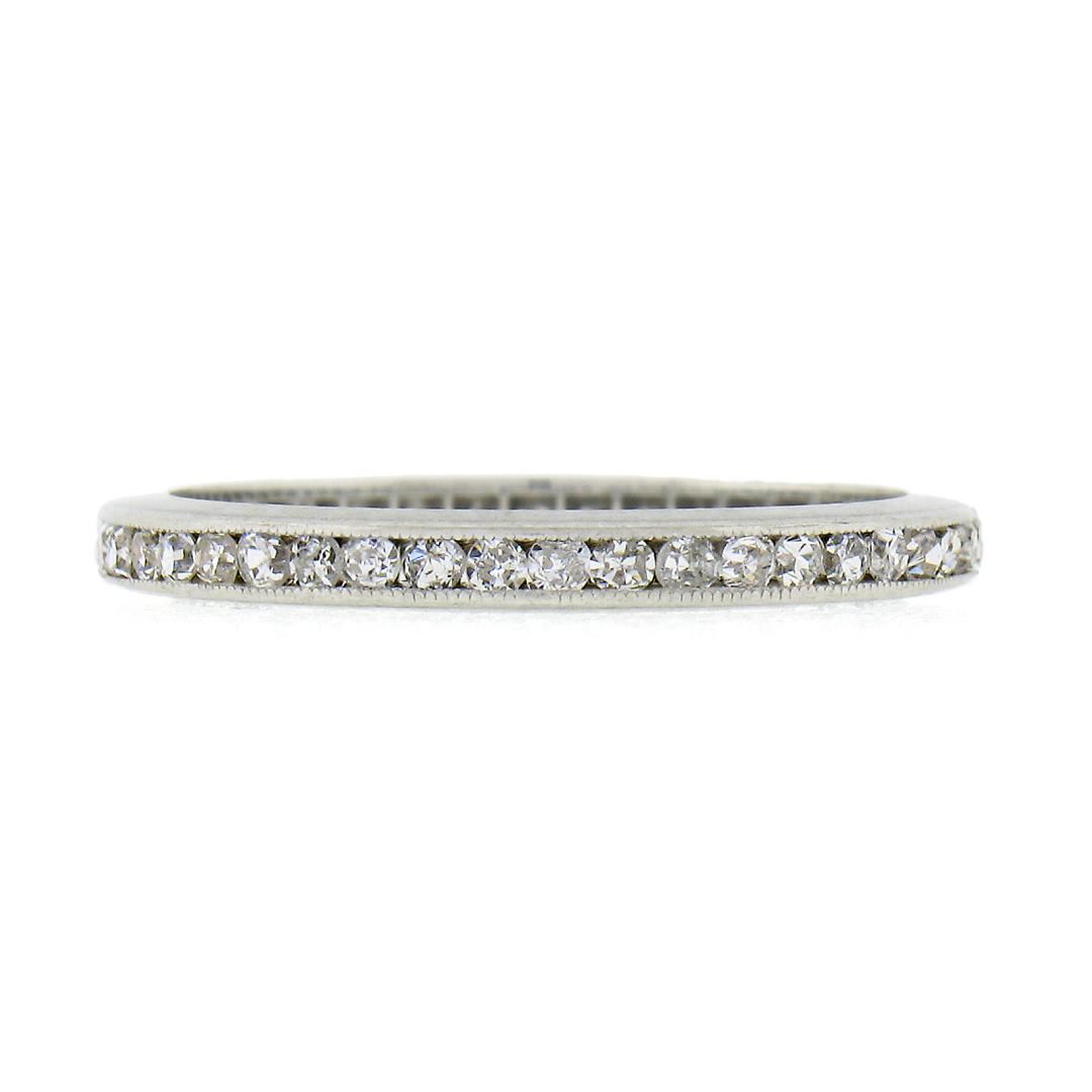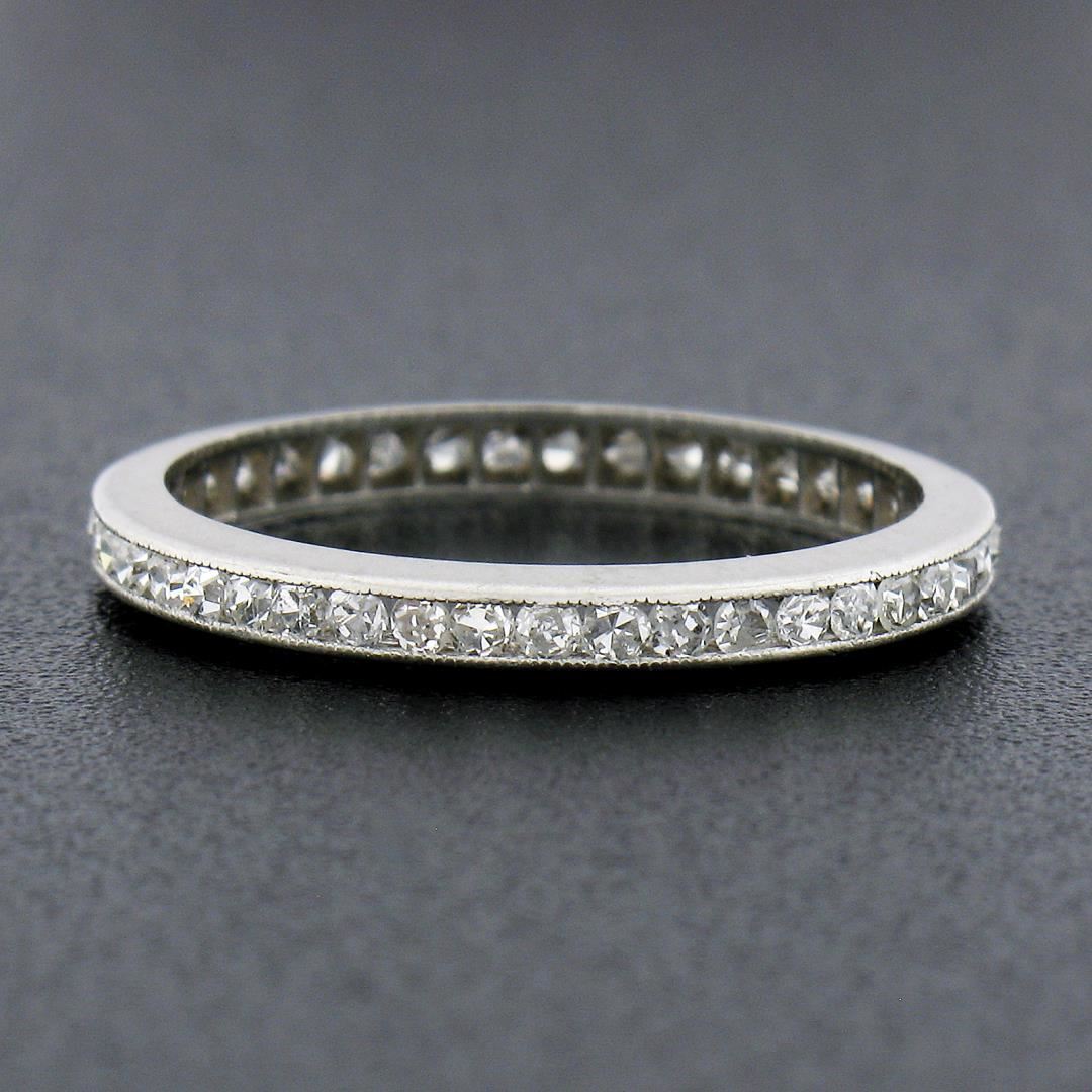 An antique solid platinum eternity band ring, with numerous of old single cut natural diamonds (G/H - VS2/I1 ; 0.68ctw). The ring is size 6.5, weighs a total of 2.05 grams, and measures 2.3mm wide.