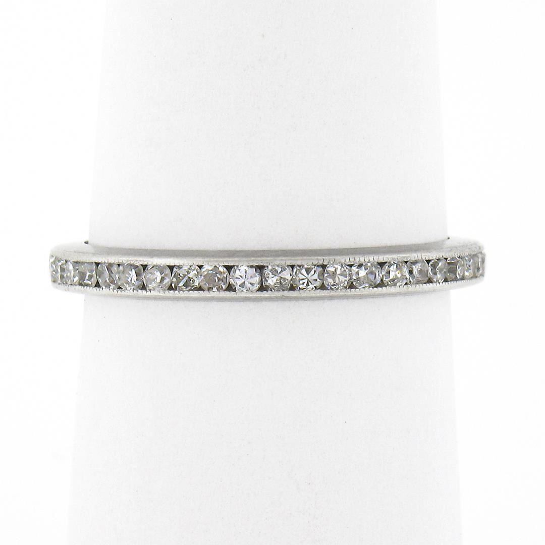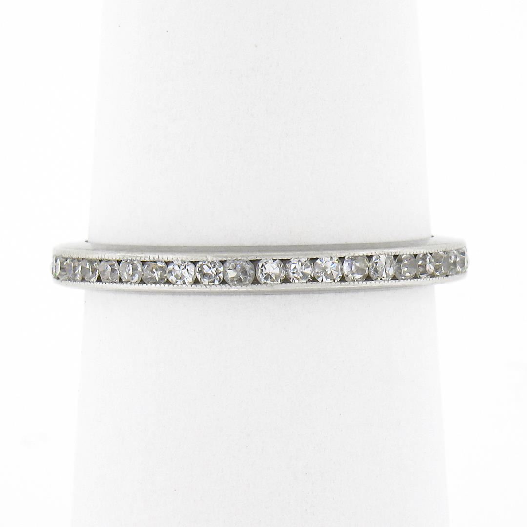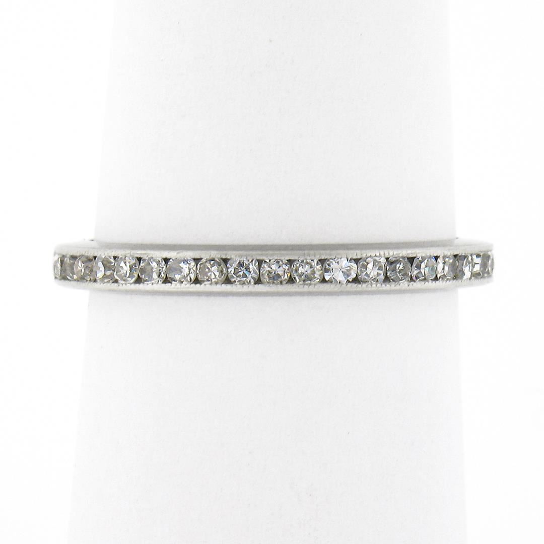 An antique solid platinum eternity band ring, with numerous of old single cut natural diamonds (G/H - VS2/I1 ; 0.68ctw). The ring is size 6.5, weighs a total of 2.05 grams, and measures 2.3mm wide.