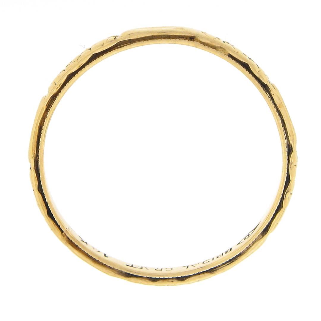 An antique solid 14k yellow gold band ring. The ring is size 7.5, weighs a total of 1.50 grams, and measures 1.9mm wide.