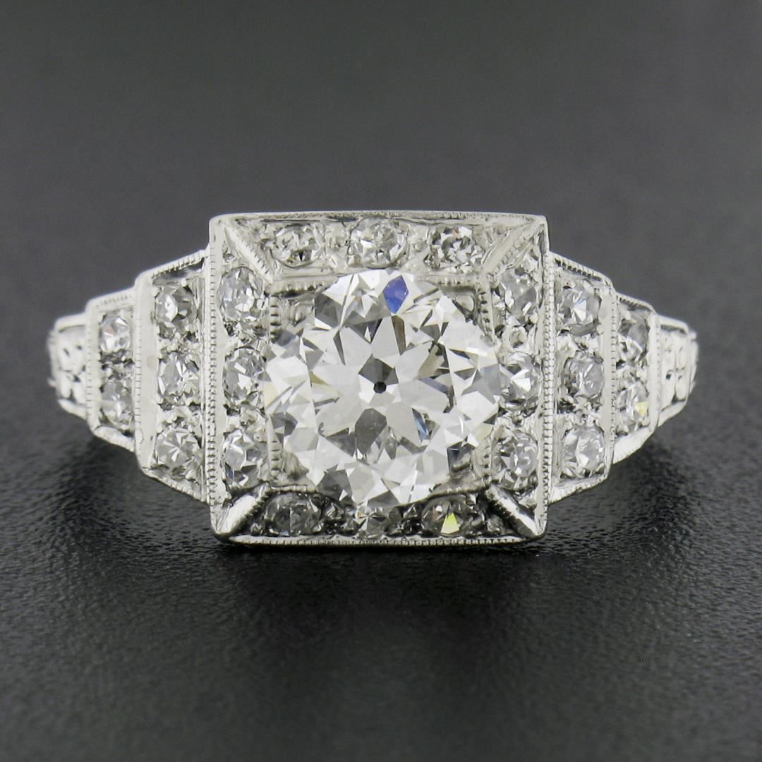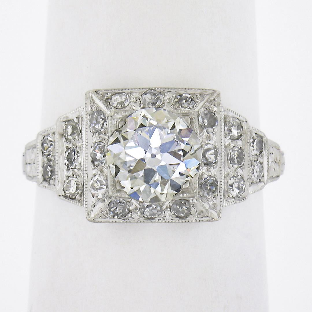 Antique Classic Art Deco Platinum 1.64ct GIA Old Diamond Pyramid Engagement Ring