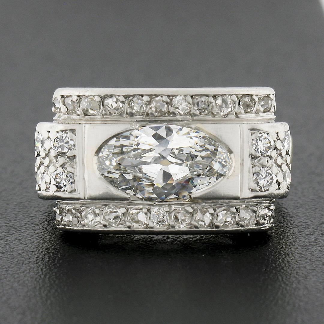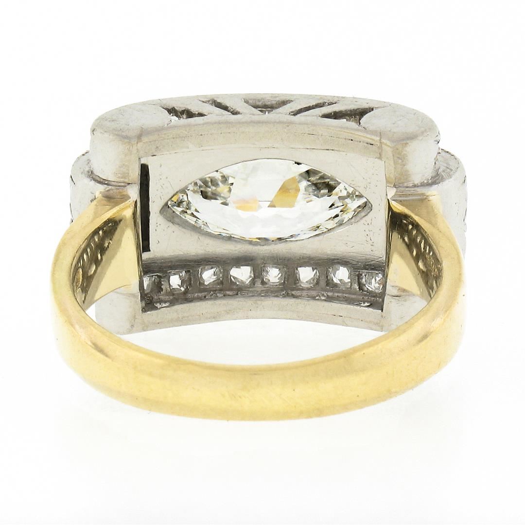 Antique Edwardian 18k Gold & Plat 1.40 ctw GIA Oval Diamond & Accents Platter Ri
