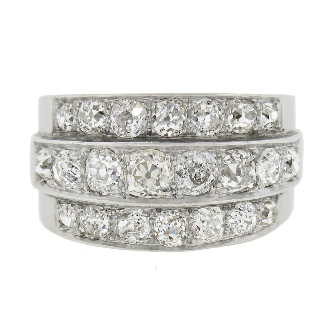 An antique solid platinum 3 row band ring, with 22 chunky old mine cut natural diamonds (G-L - VS2-I2 ; 2.75ctw). The ring is size 8.0, weighs a total of 7.90 grams, and measures 12.7mm wide.