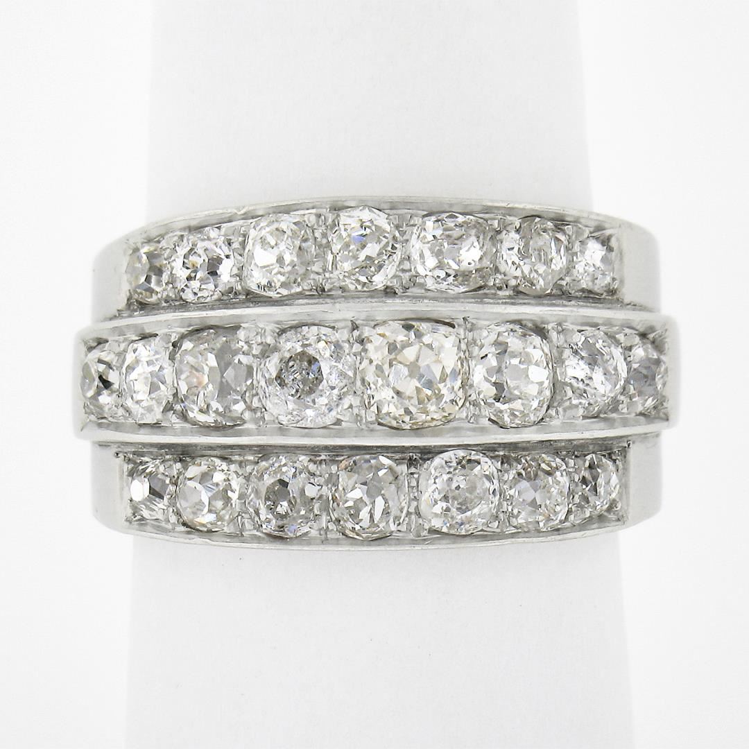 An antique solid platinum 3 row band ring, with 22 chunky old mine cut natural diamonds (G-L - VS2-I2 ; 2.75ctw). The ring is size 8.0, weighs a total of 7.90 grams, and measures 12.7mm wide.