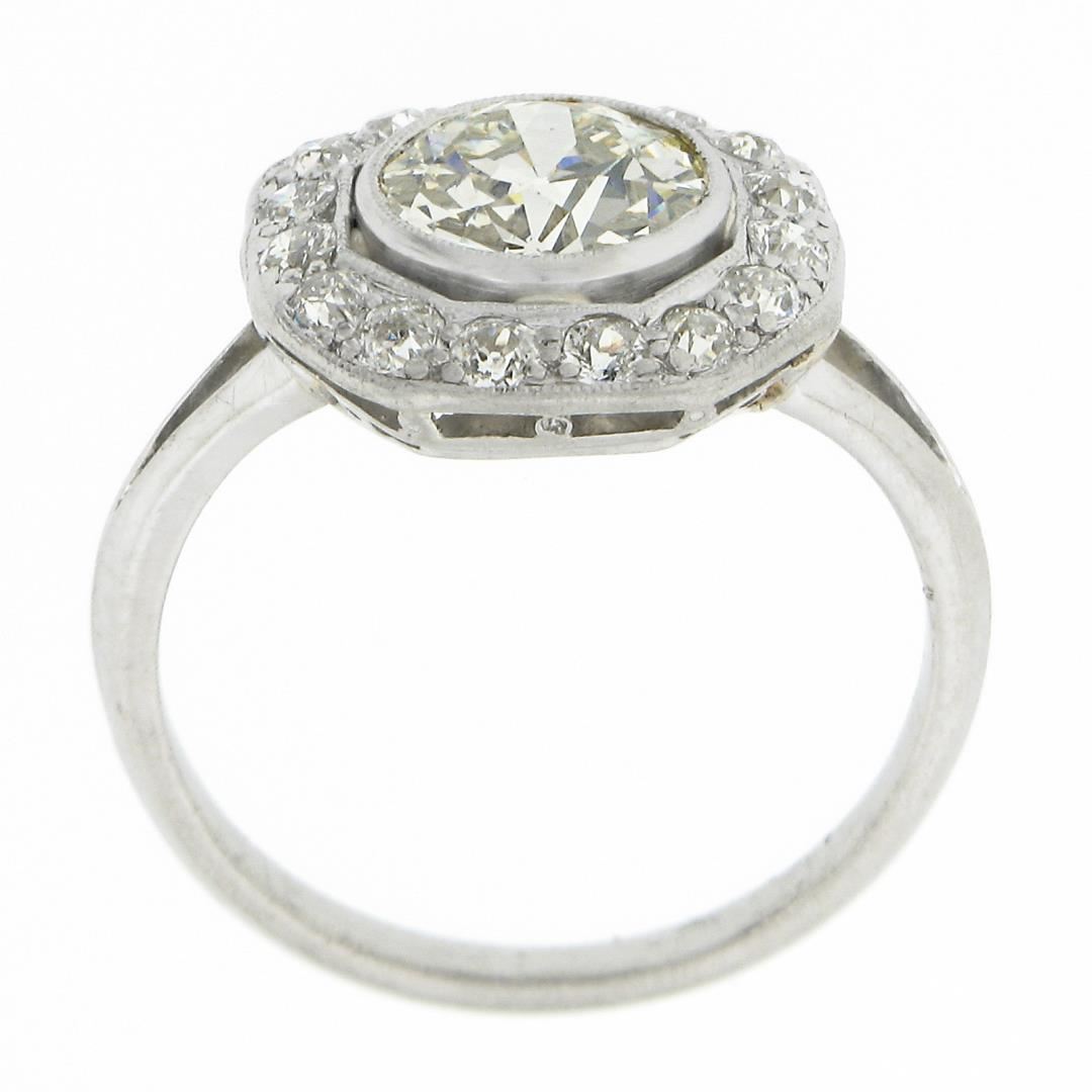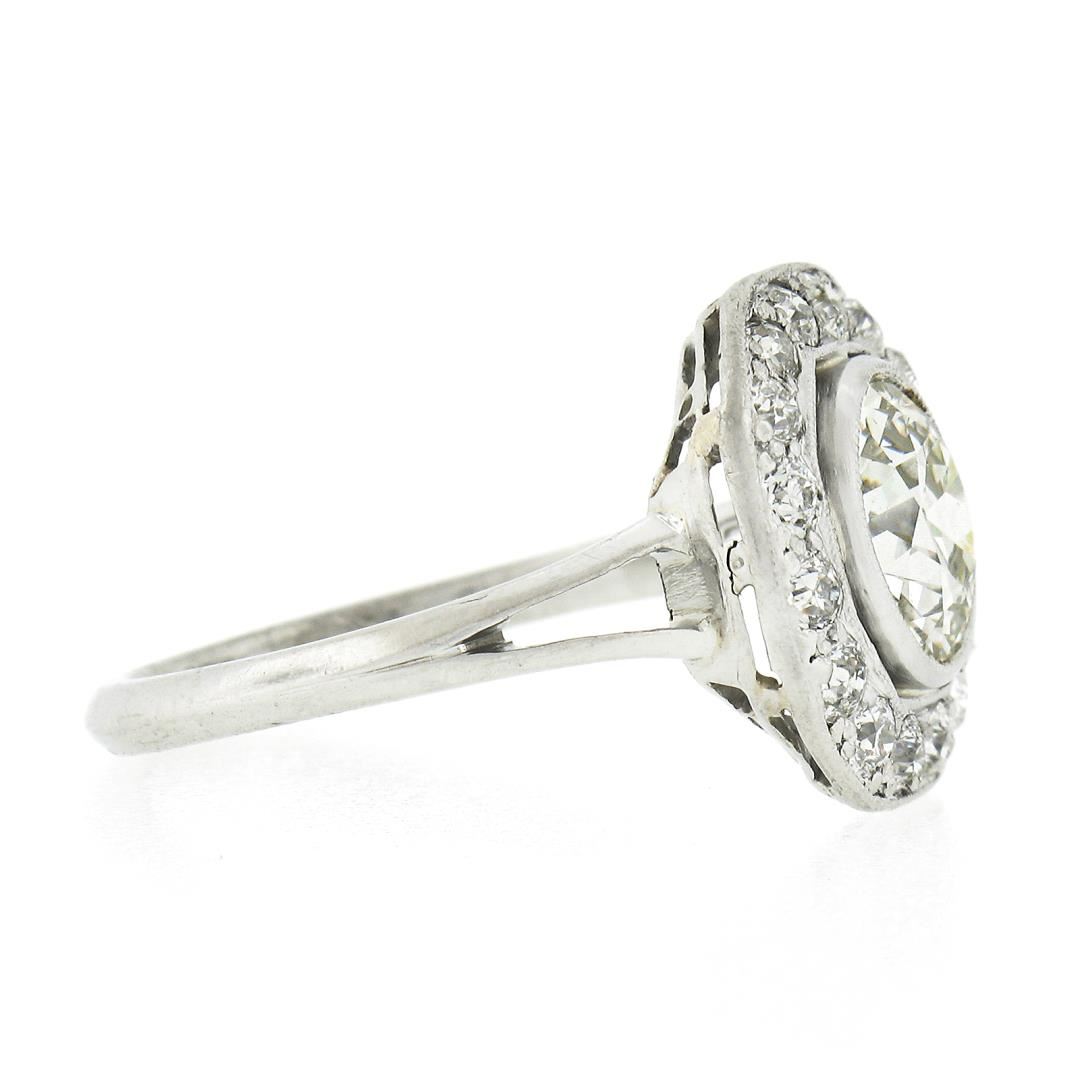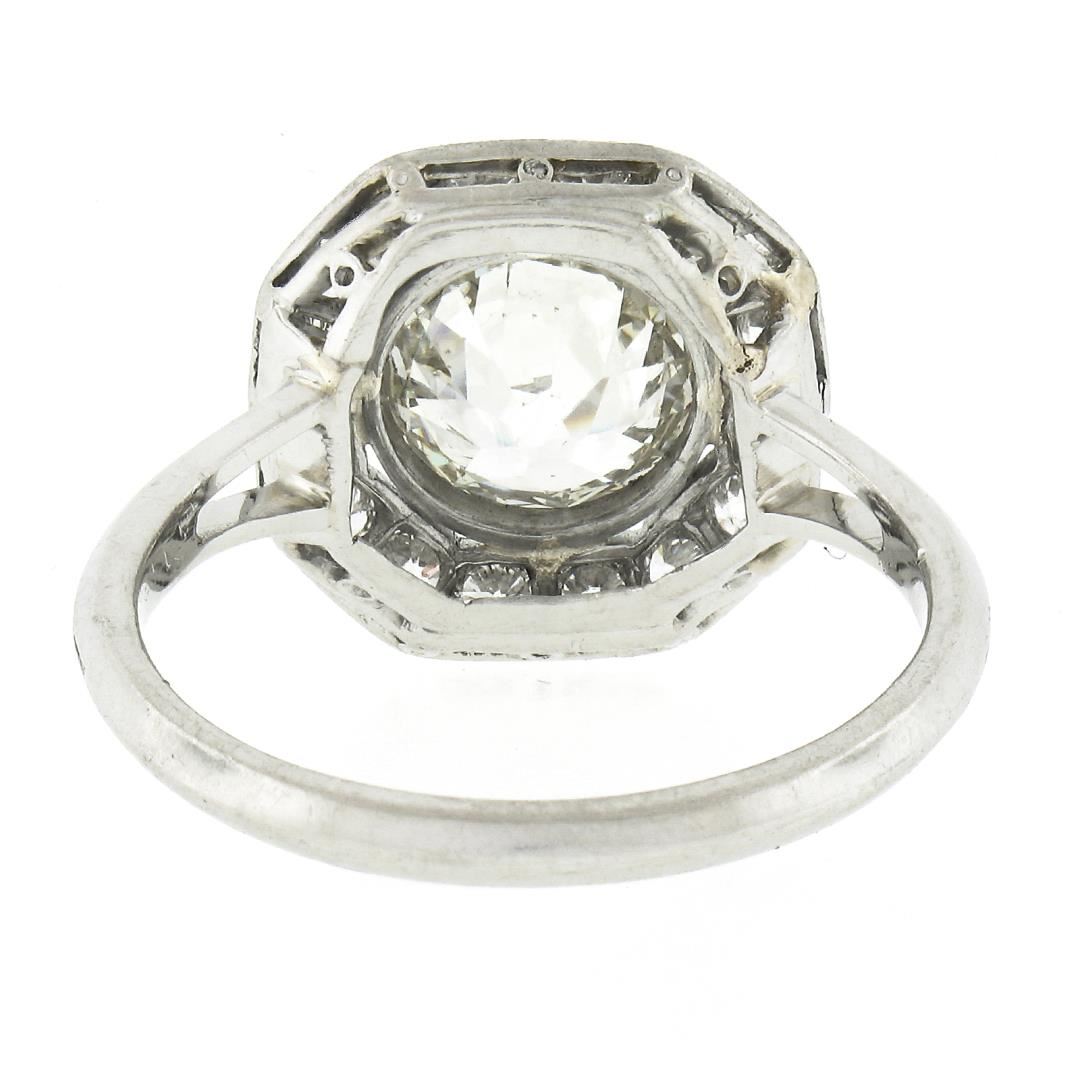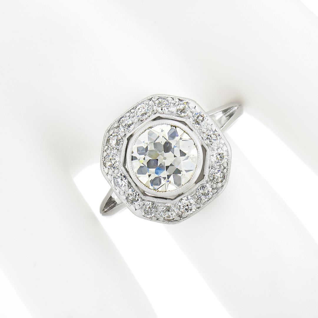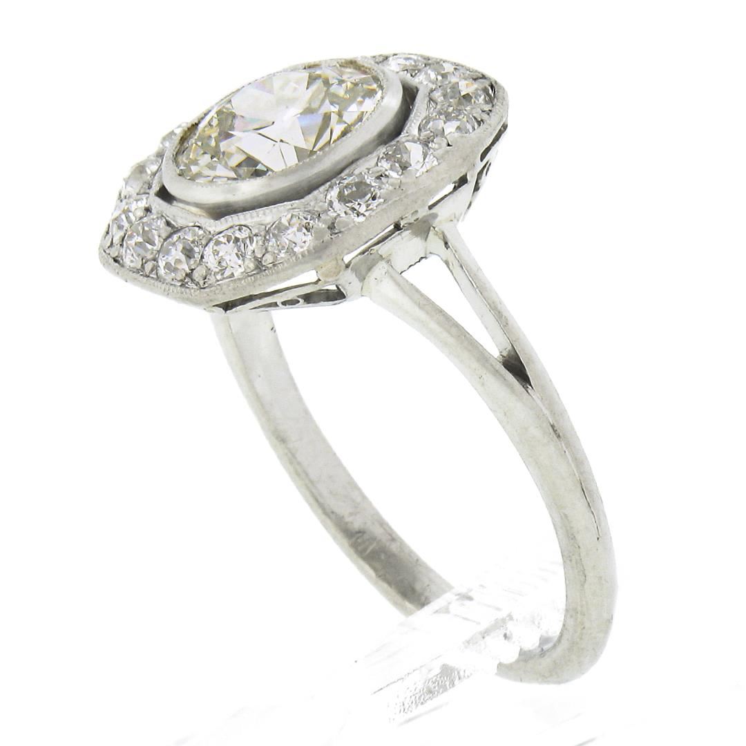 An antique solid platinum platter ring, with 1 GIA graded old European cut natural diamond (K - VS1 ; 2.19ct), and 16 old European & single cut natural diamonds (H/I - VS1/VS2 ; 0.80ctw). The ring is size 9.5, weighs a total of 6.40 grams, and measures 15.3mm wide. Comes with all original relevant certifications.