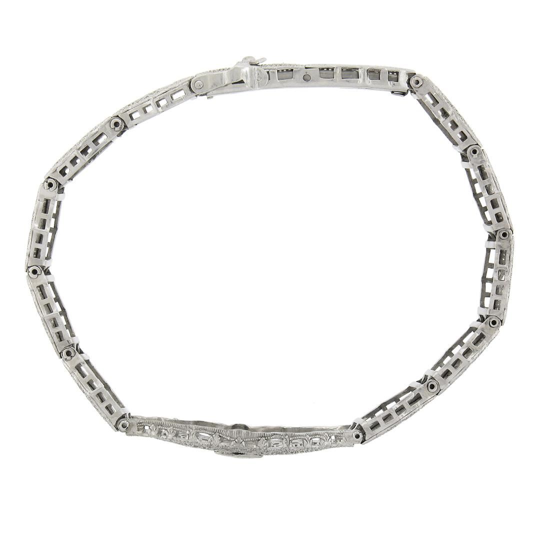 Antique Esemco 10k White Gold 0.03ct Diamond Milgrain Filigree Belly Bracelet