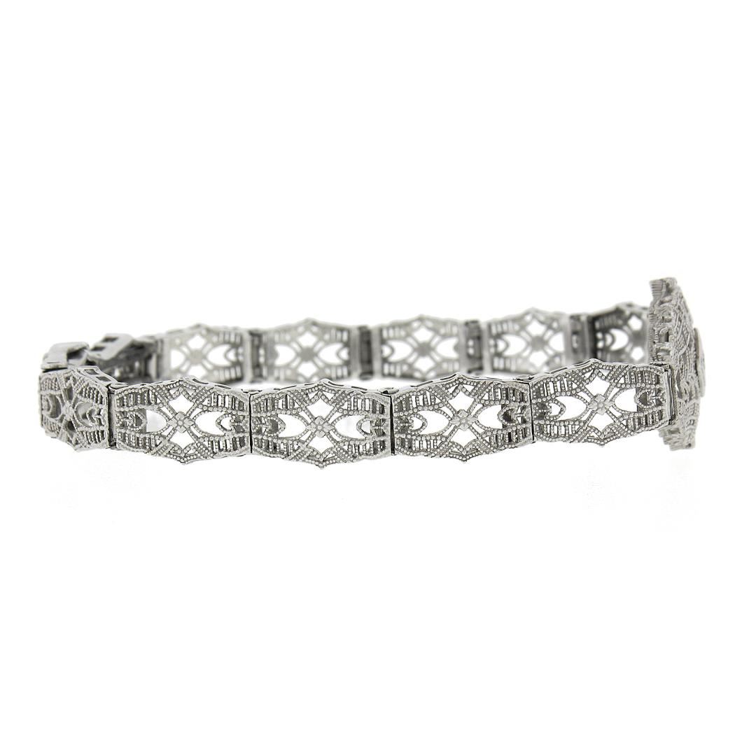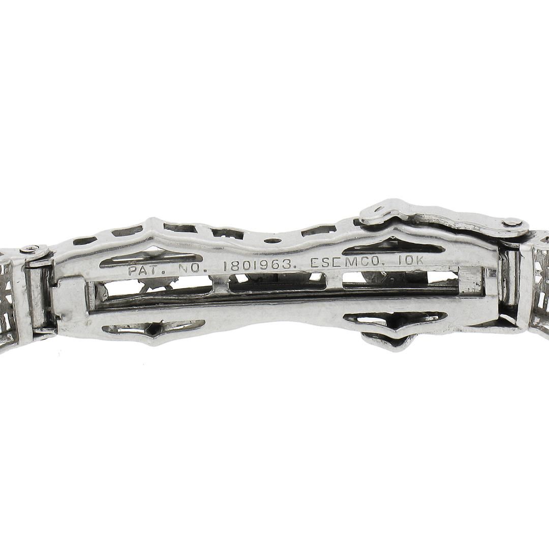 Antique Esemco 10k White Gold 0.03ct Diamond Milgrain Filigree Belly Bracelet