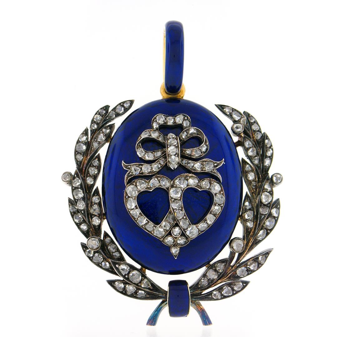 An antique solid 14k yellow gold & silver pendant, with 133 old rose cut natural diamonds (G/J - SI1/SI2 ; 2ctw). The pendant weighs a total of 18.94 grams, measures 52.10x38mm including the bail, and the inside of the bail measures 7.7.x5.9mm.