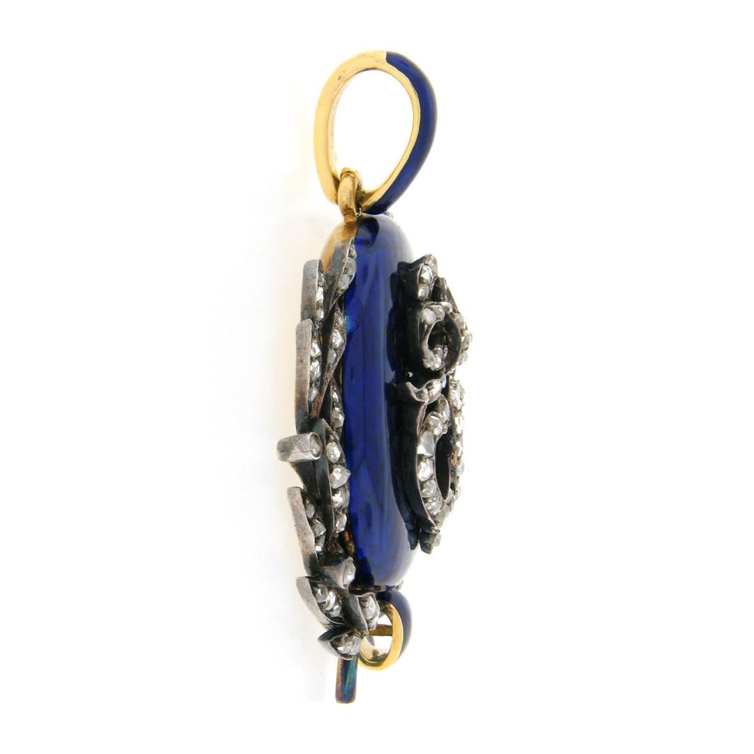 An antique solid 14k yellow gold & silver pendant, with 133 old rose cut natural diamonds (G/J - SI1/SI2 ; 2ctw). The pendant weighs a total of 18.94 grams, measures 52.10x38mm including the bail, and the inside of the bail measures 7.7.x5.9mm.