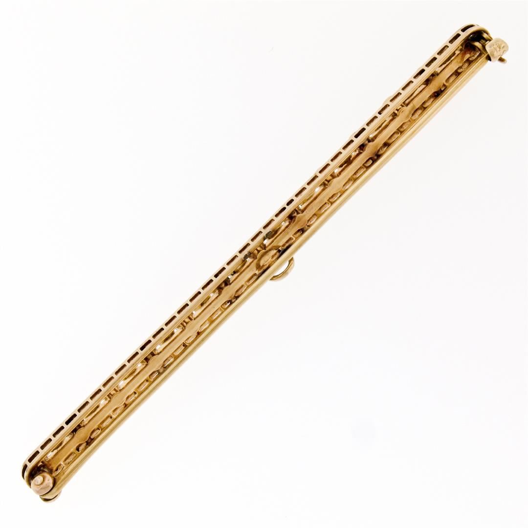 Antique Krementz 14k Gold 1.30ctw Old Sapphire Natural Pearl Long Bar Pin Brooch. Please see photos and description for all available information. An antique krementz solid 14k yellow gold bar pin brooch. featuring 13 old round cut natural sapphires (1.30ctw), alternated with 12 round cut natural pearls (2.6-2.8). Measures 4.9x79mm and weighs a total of 6.19 grams.