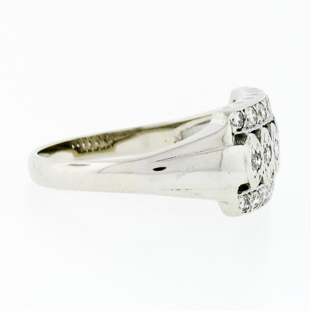 an antique solid 14k white gold band ring, featuring 20 old transitional cut natural diamonds ( I/J - VS1/VS2 ; 0.50ctw). The ring is size 10.5, weighs a total of 5.51 grams, and measures 10.9mm wide.