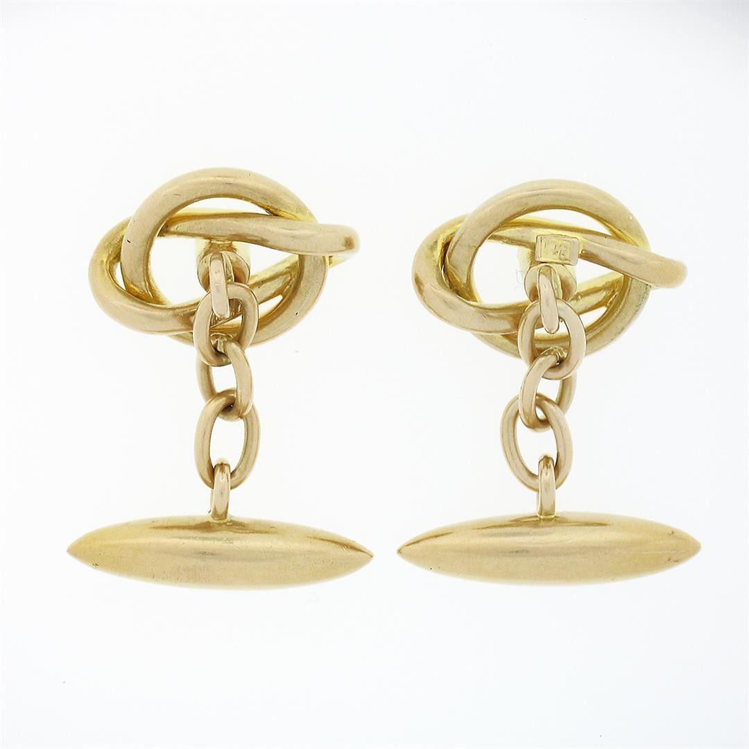 An antique art nouveau solid 18k yellow gold cufflinks, with 2 round cabochon cut natural turquoises (2.7mm ). These cuff links have a graduated tube on chain design with a clearance of 17.5mm, weigh a total of 8.96 grams, and the front panels measure 16.9x12.7mm.