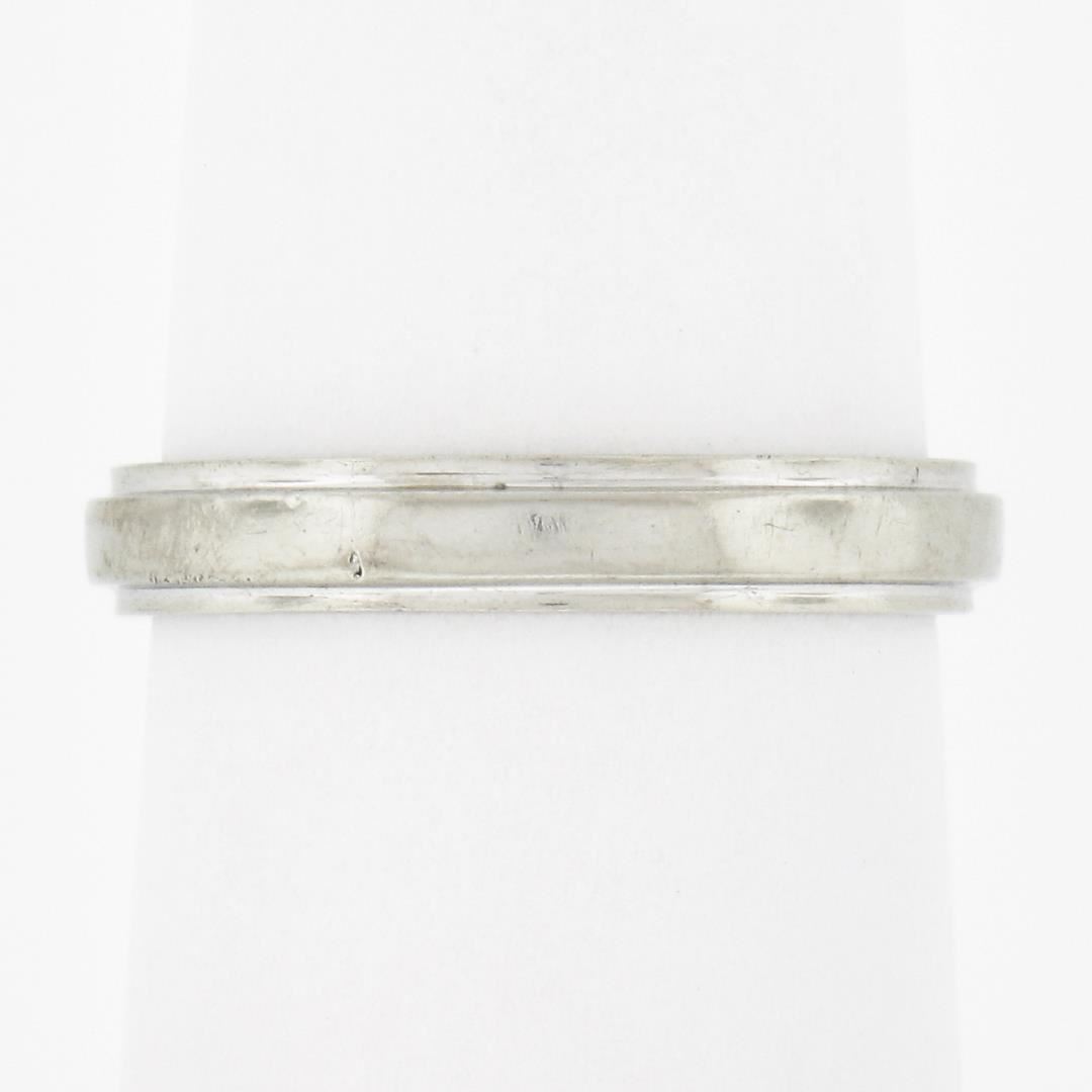 An antique solid 18k white gold band ring by Orange Blossom. The ring is size 5.5, weighs a total of 3.07 grams, and measures3.2mm wide.