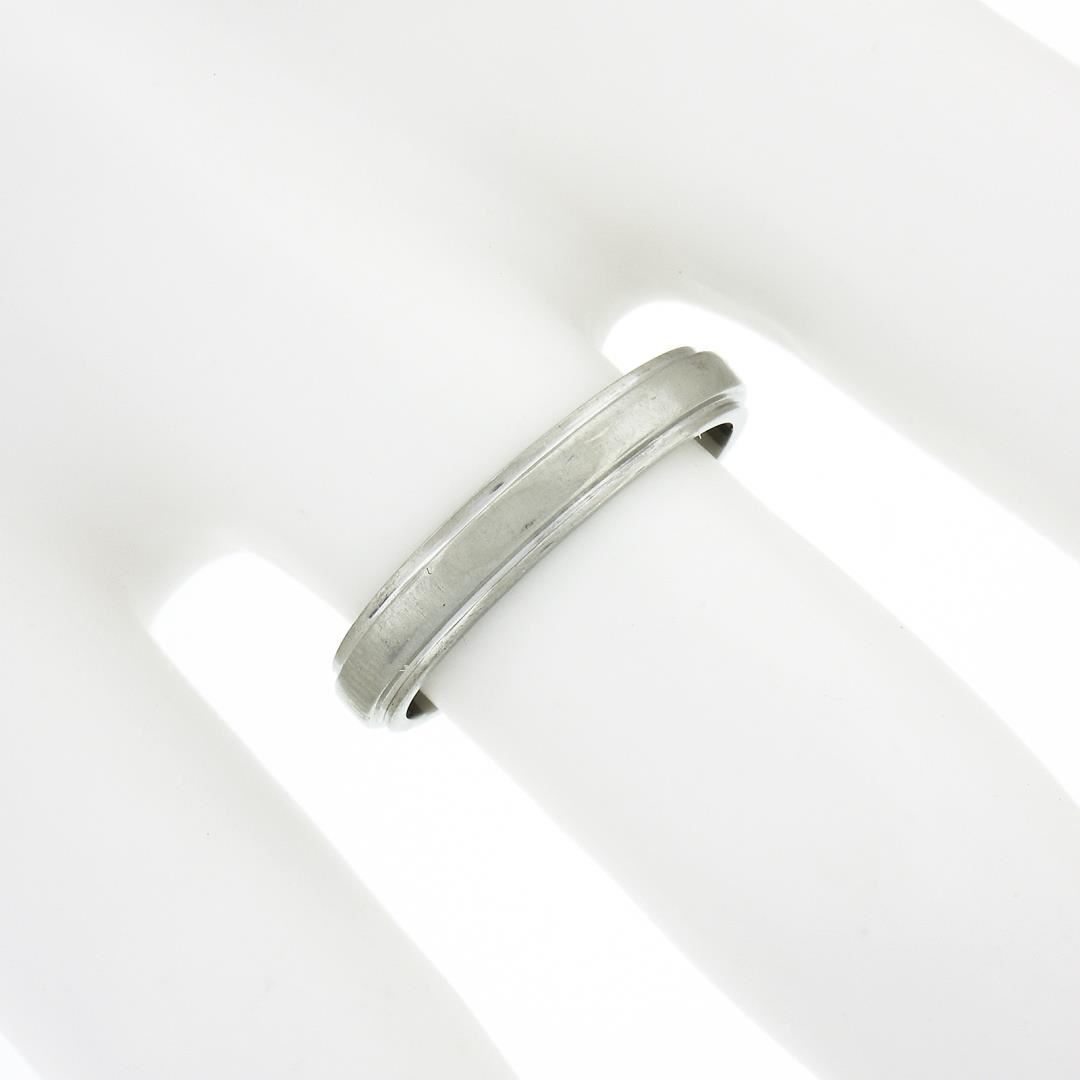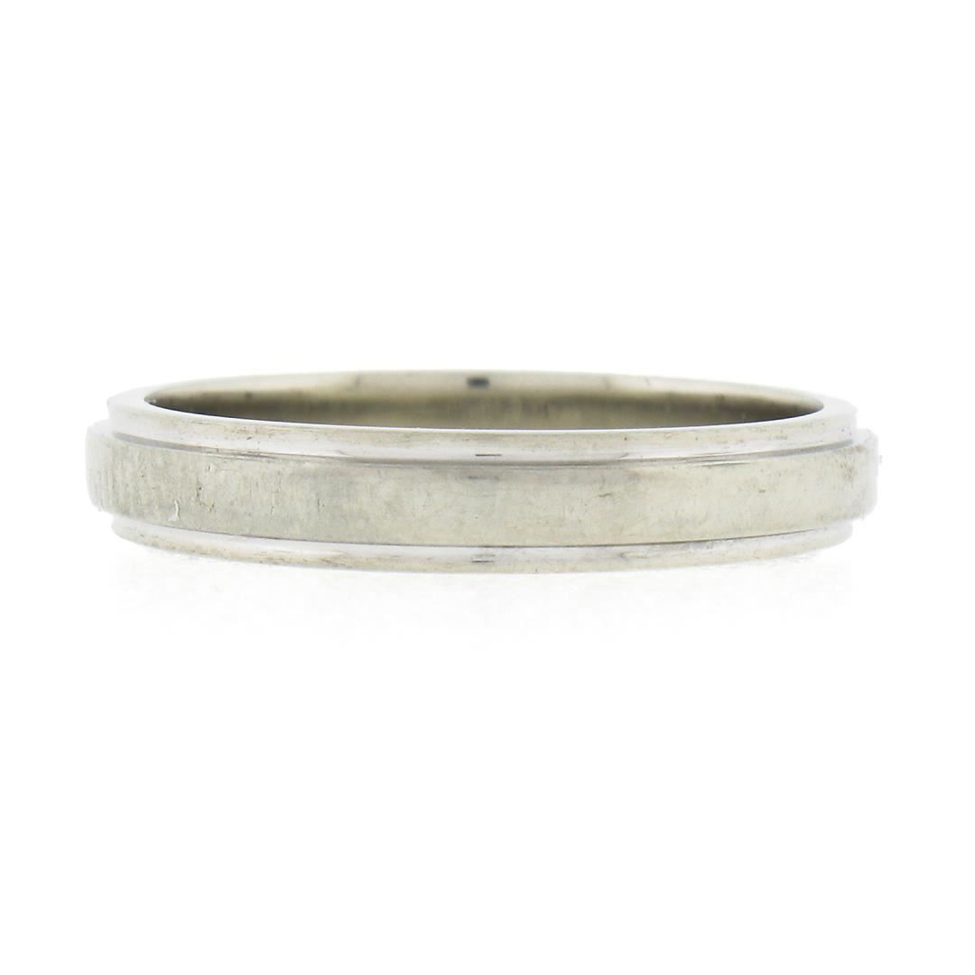 An antique solid 18k white gold band ring by Orange Blossom. The ring is size 5.5, weighs a total of 3.07 grams, and measures3.2mm wide.
