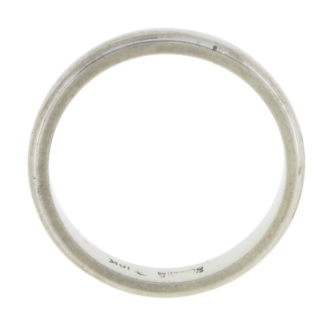 An antique solid 18k white gold band ring by Orange Blossom. The ring is size 5.5, weighs a total of 3.07 grams, and measures3.2mm wide.