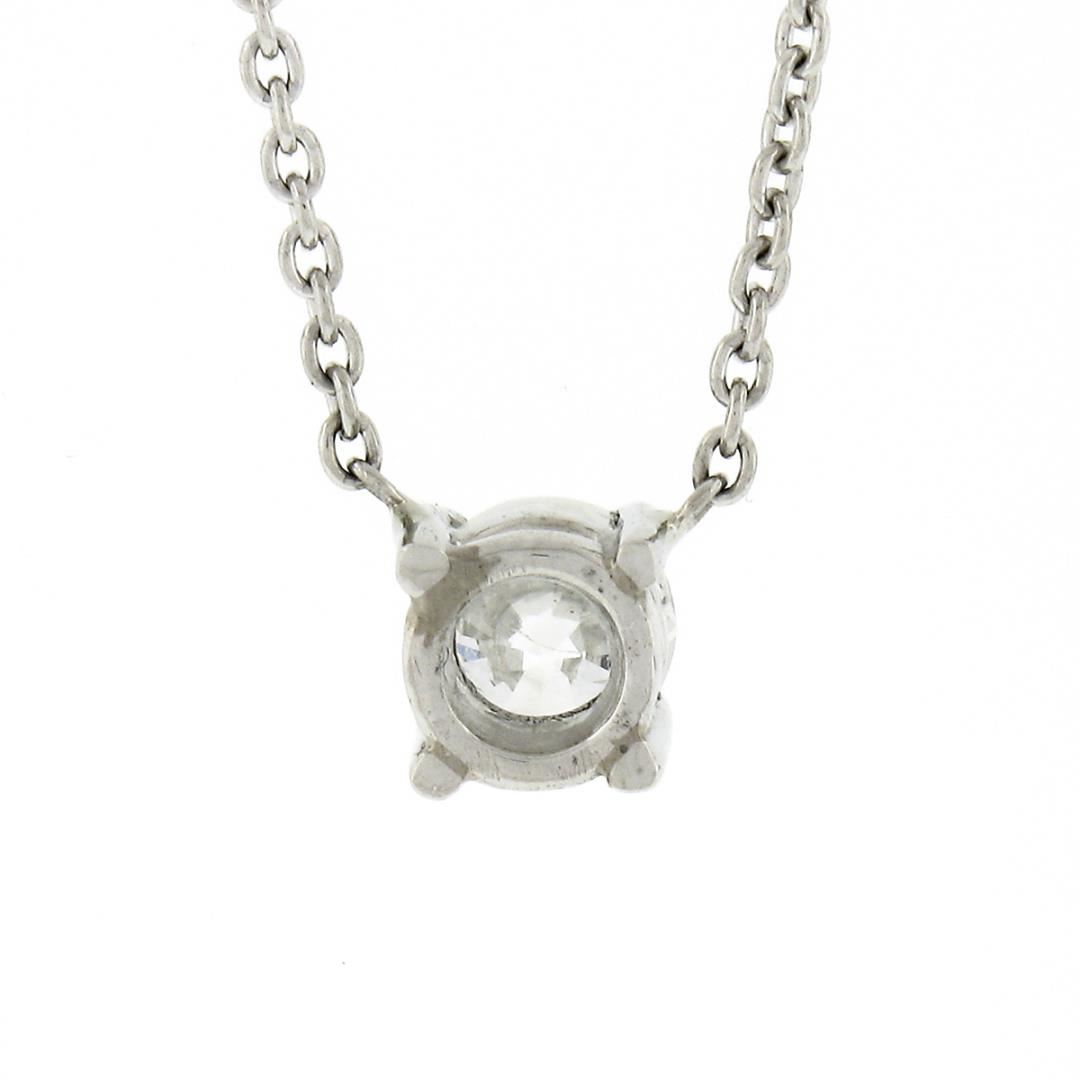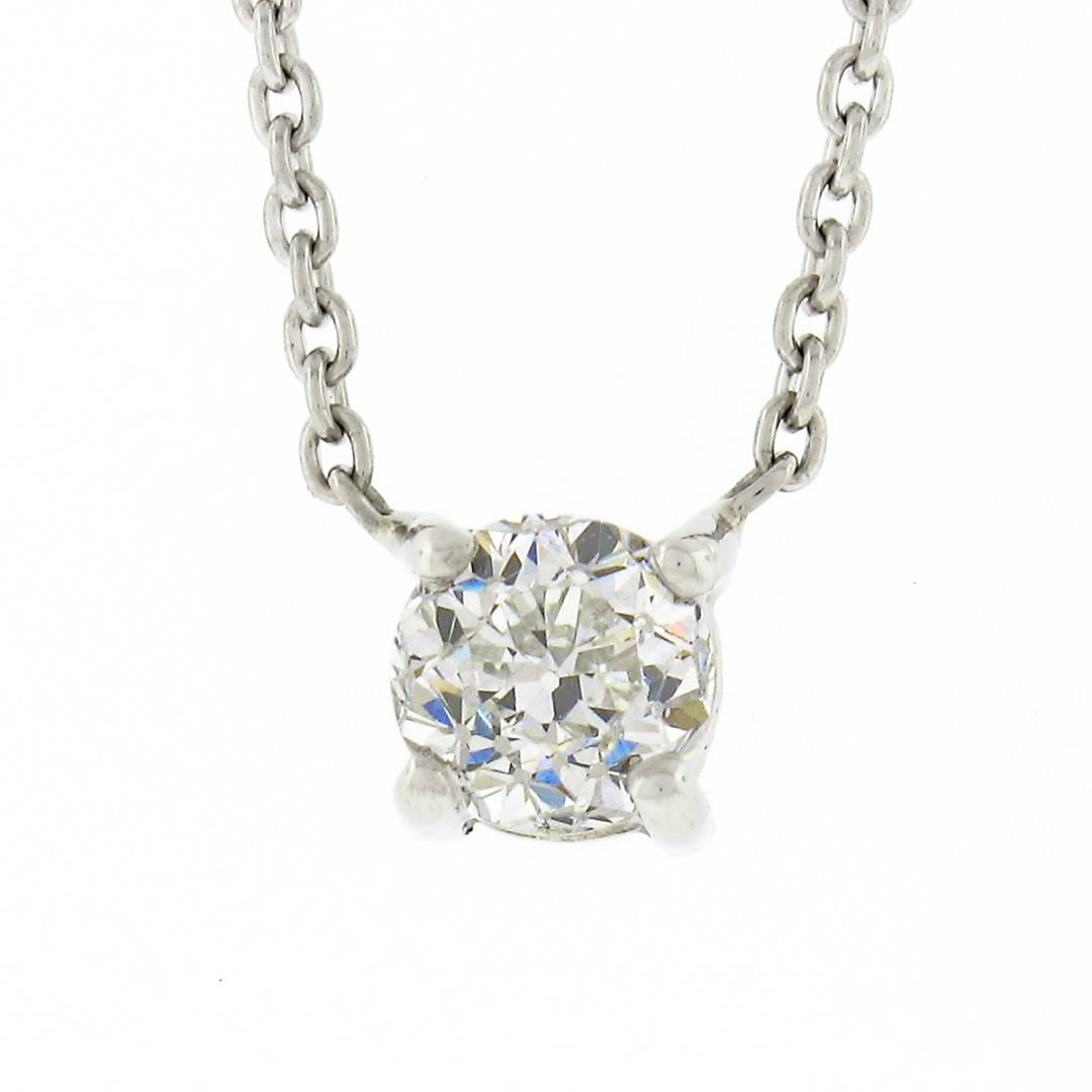 An antique solid platinum solitaire pendant necklace, with 1 old European cut natural diamond (H - VS2 ; 0.42ct). Adjustable 16 or 18 inch cable link chain, 3.58 grams total weight, pendant measures 4.50mm in diameter.