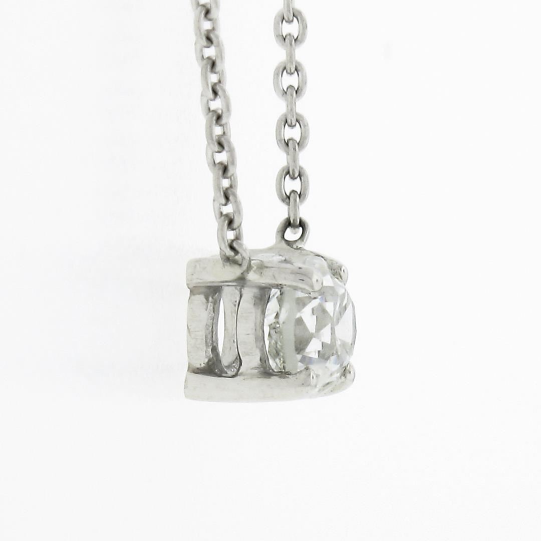 An antique solid platinum solitaire pendant necklace, with 1 old European cut natural diamond (H - VS2 ; 0.42ct). Adjustable 16 or 18 inch cable link chain, 3.58 grams total weight, pendant measures 4.50mm in diameter.