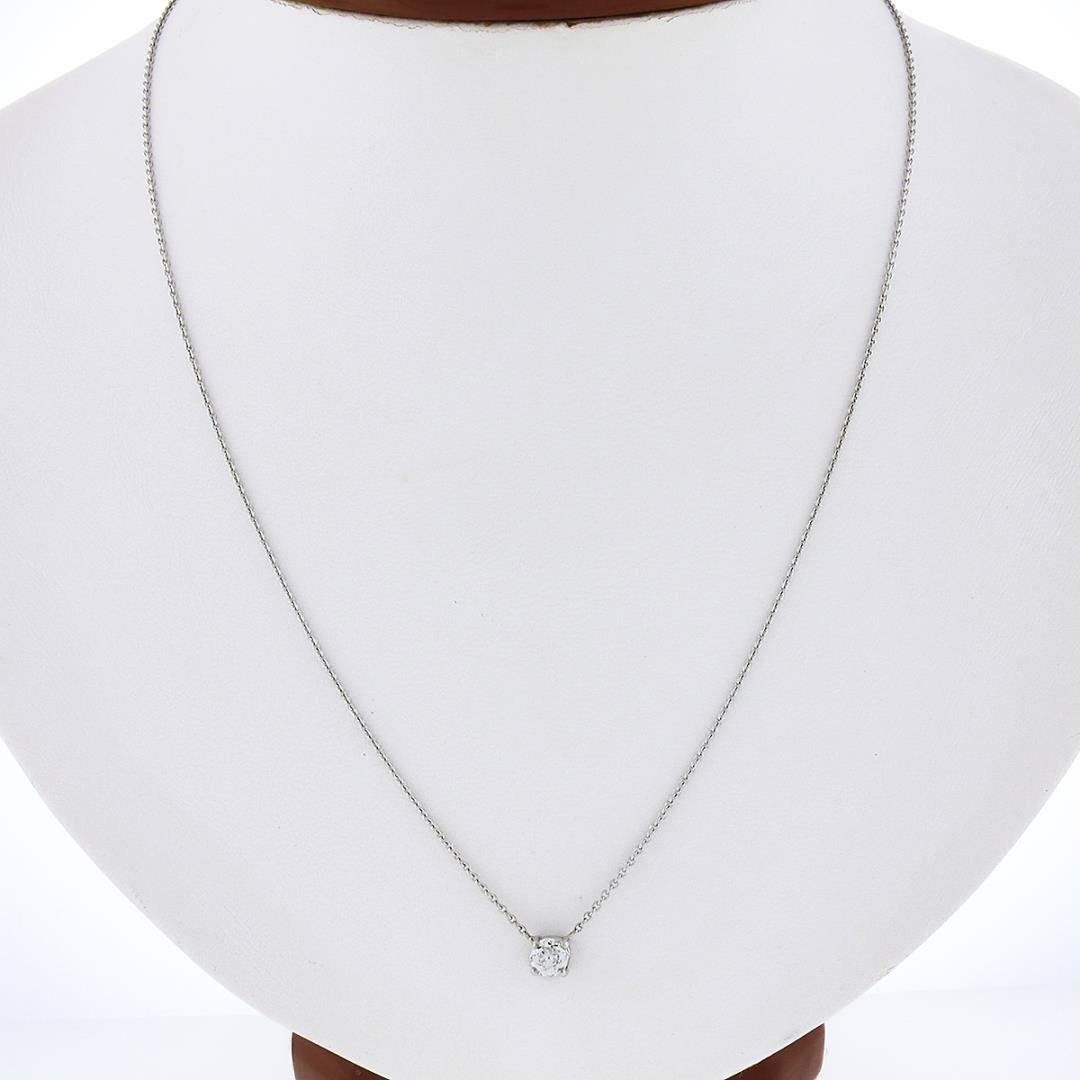 An antique solid platinum solitaire pendant necklace, with 1 old European cut natural diamond (H - VS2 ; 0.42ct). Adjustable 16 or 18 inch cable link chain, 3.58 grams total weight, pendant measures 4.50mm in diameter.