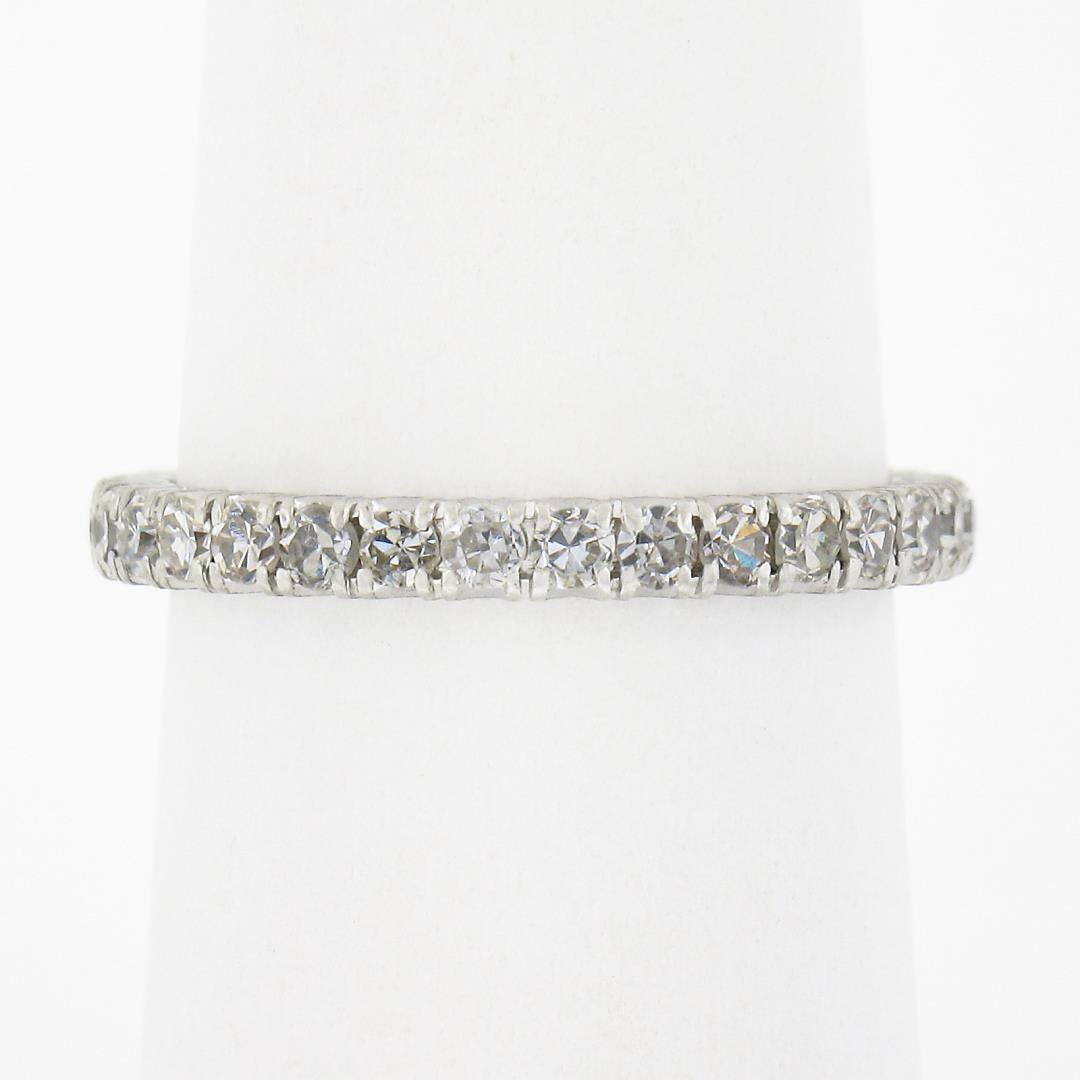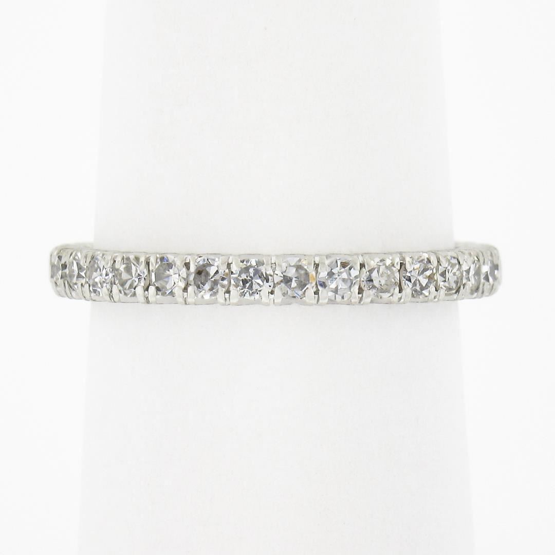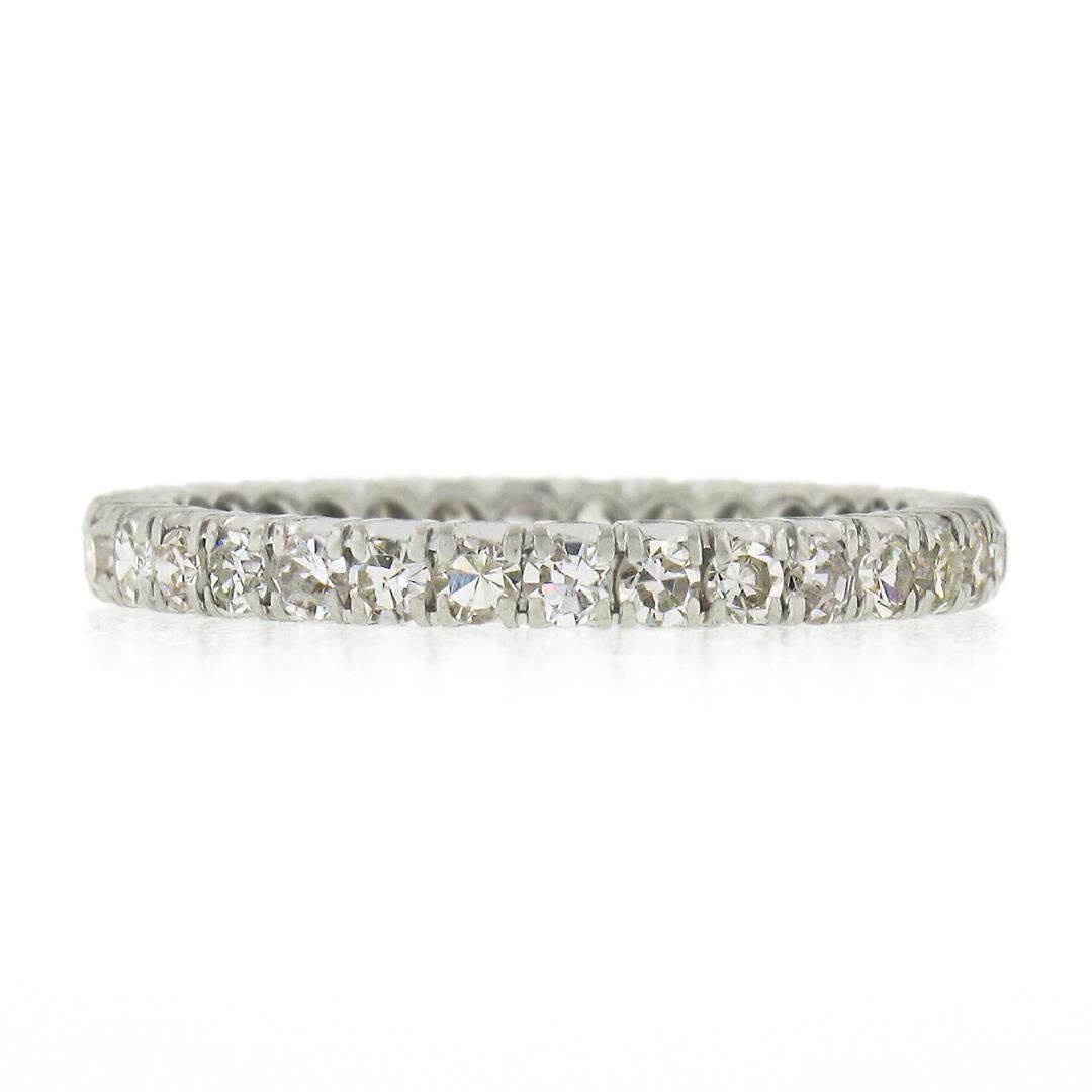 An antique solid platinum band ring, with 32 old single cut natural diamonds (H/I - VS2/SI2 ; 0.80ctw). The ring is size 6.5, weighs a total of 2.55 grams, and measures 2.3mm wide.