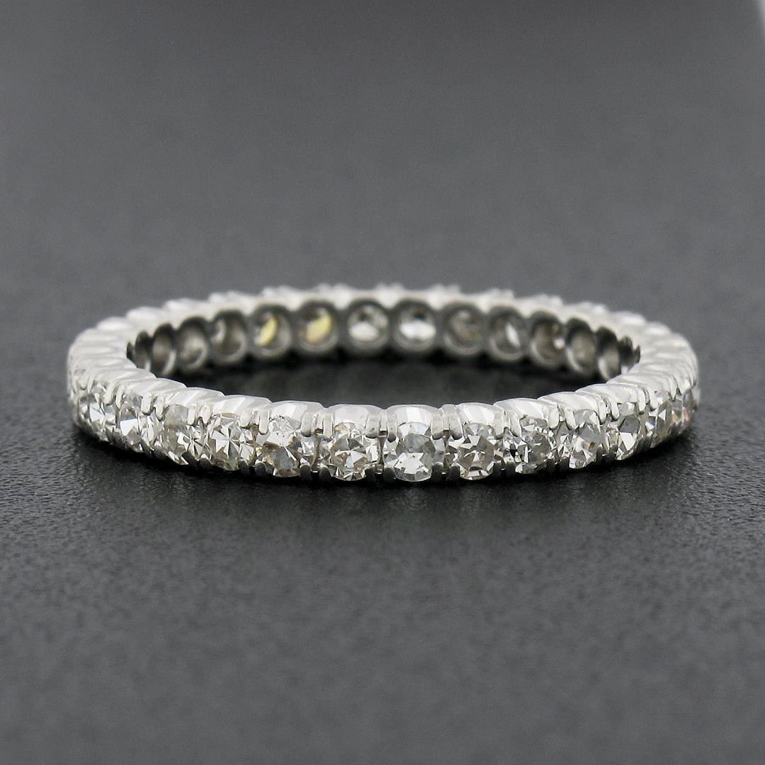 An antique solid platinum band ring, with 32 old single cut natural diamonds (H/I - VS2/SI2 ; 0.80ctw). The ring is size 6.5, weighs a total of 2.55 grams, and measures 2.3mm wide.