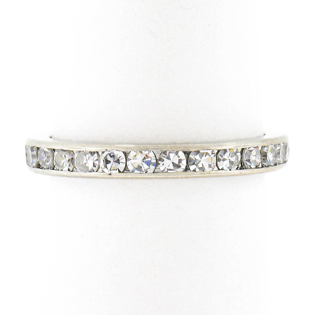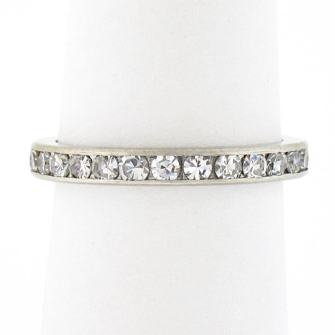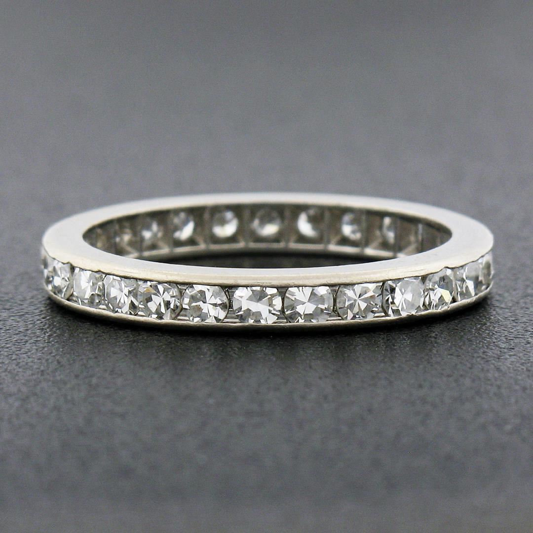 An antique solid platinum eternity band ring, with 28 old single cut natural diamonds (G/H - VS1/VS2 ; 1ctw). The ring is size 6.0, weighs a total of 3.27 grams, and measures 2.6mm wide.