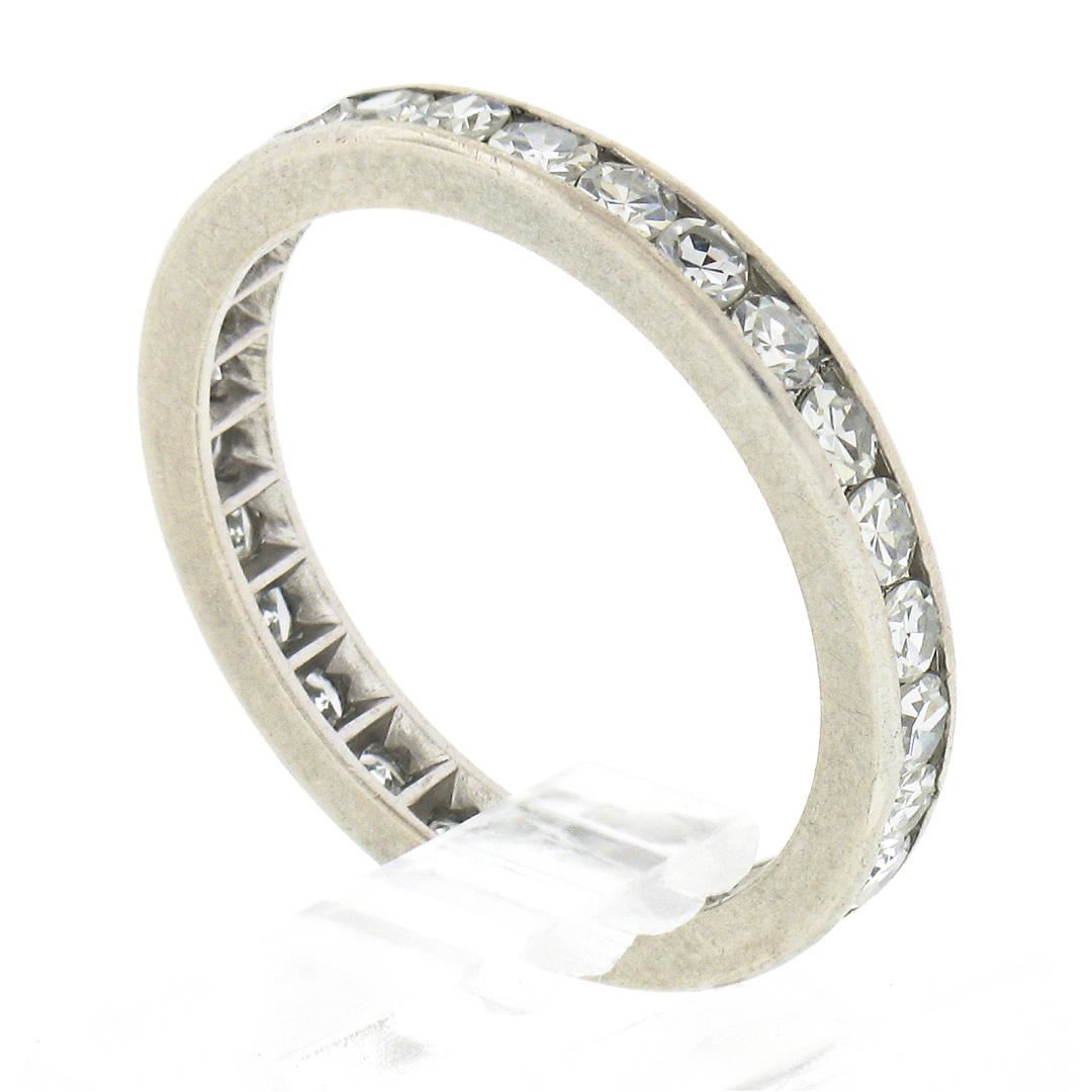 An antique solid platinum eternity band ring, with 28 old single cut natural diamonds (G/H - VS1/VS2 ; 1ctw). The ring is size 6.0, weighs a total of 3.27 grams, and measures 2.6mm wide.