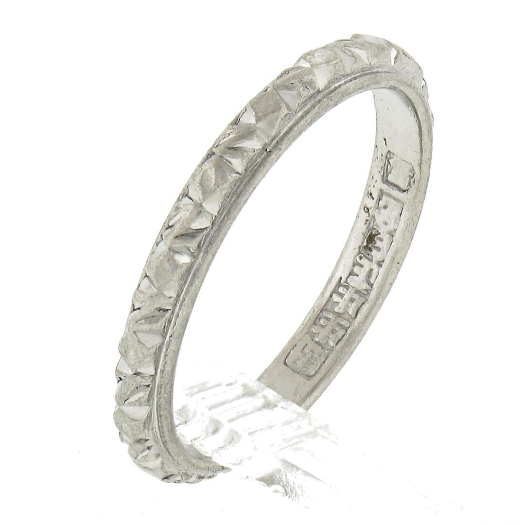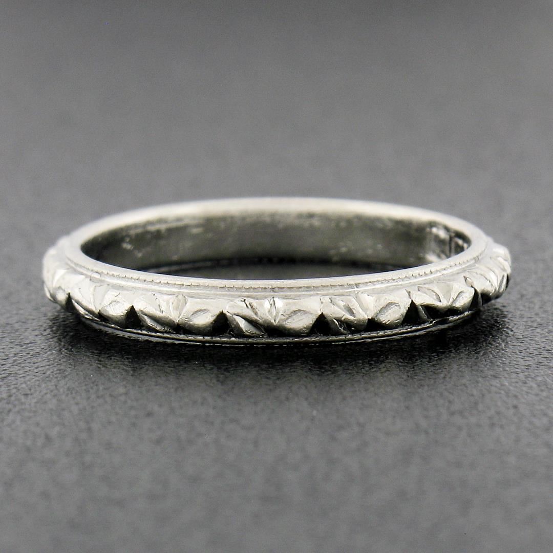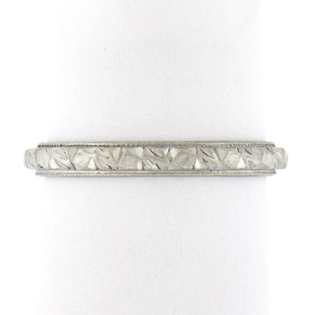 Antique Platinum 2.6mm Detailed Textured Work Eternity Stackable Band Ring