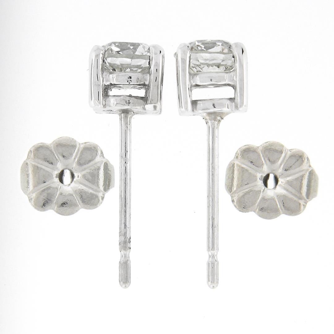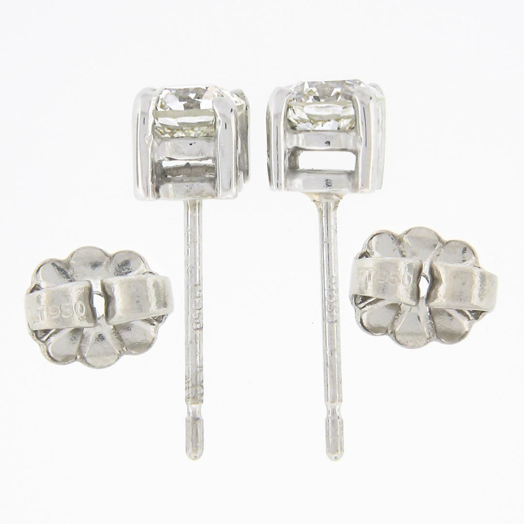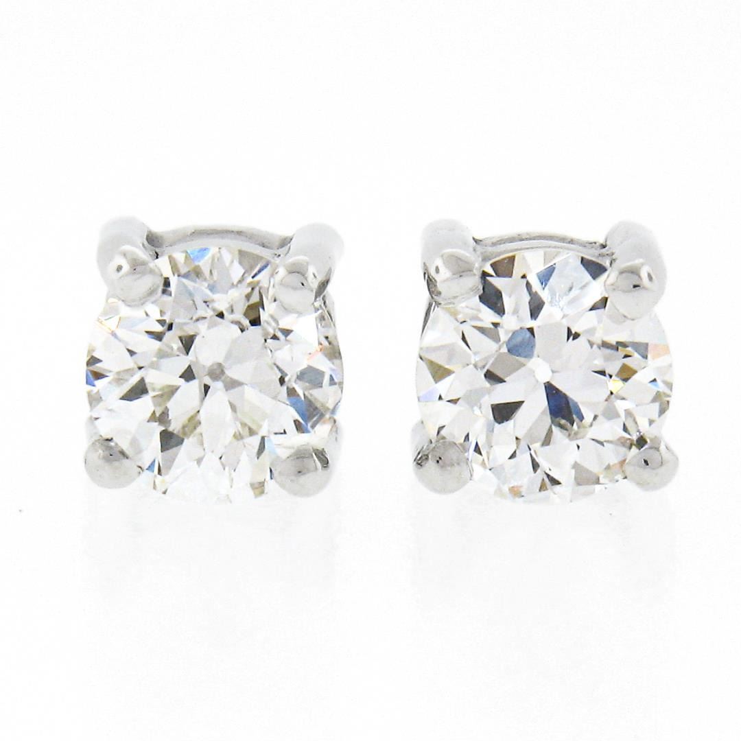 An antique solid platinum pair of stud earrings. with 2 old European cut natural diamonds (G/H - VS2/SI1 ; 0.83ctw). The earrings measure approximately 5.95mm in diameter and weigh a total of 1.85 grams.