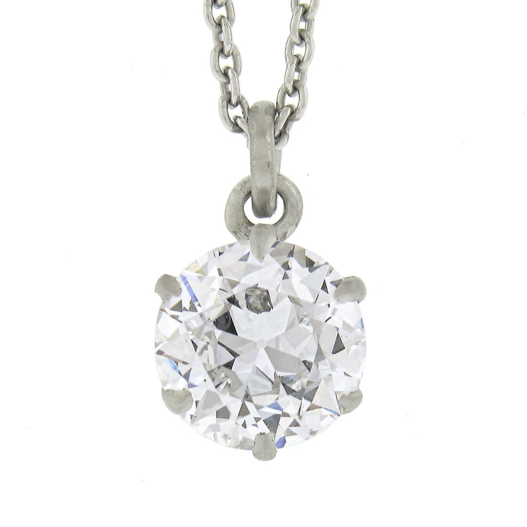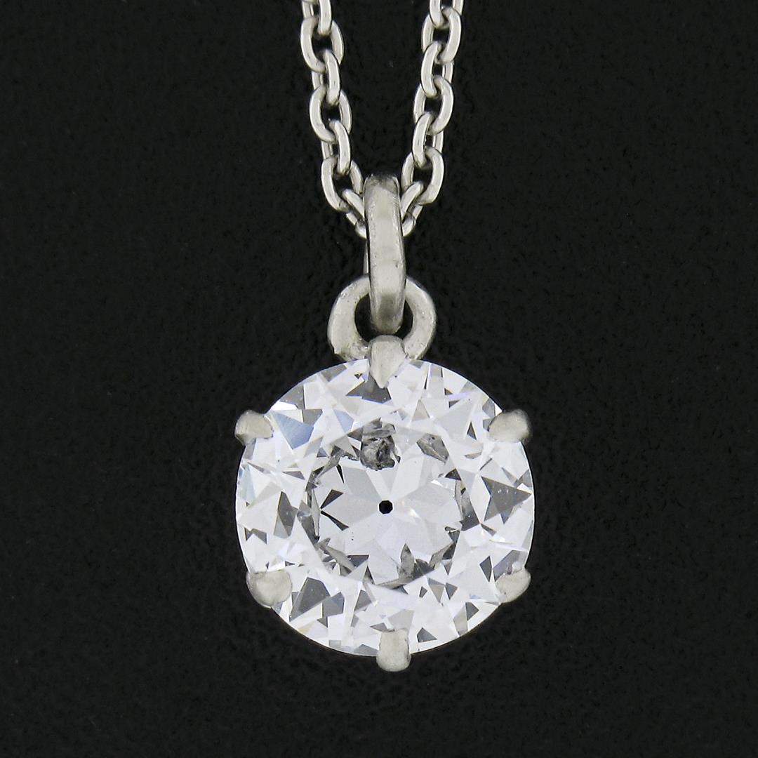Antique Platinum .98ct GIA Round D/VS1 Diamond Solitaire Pendant & 18" Chain