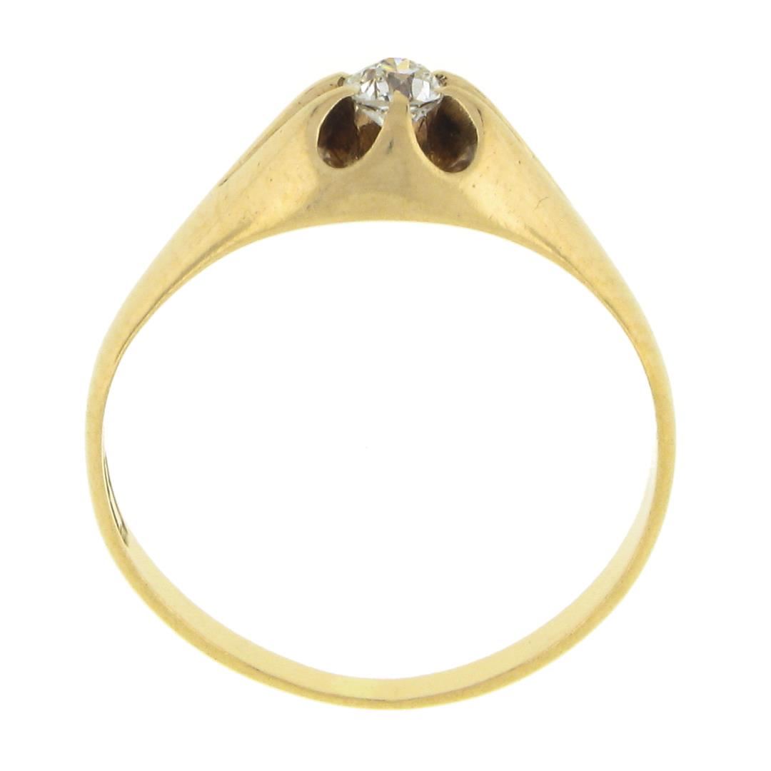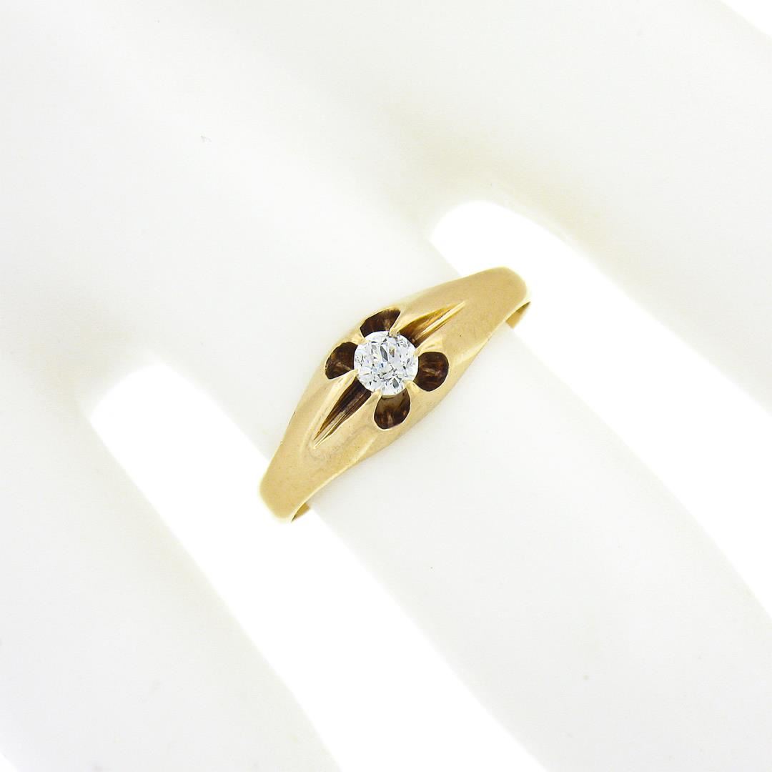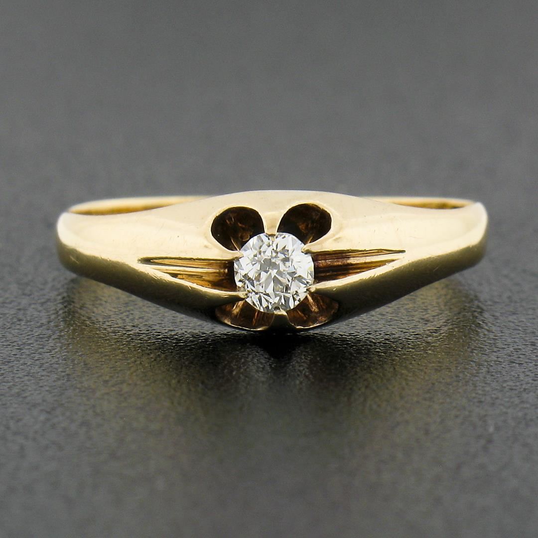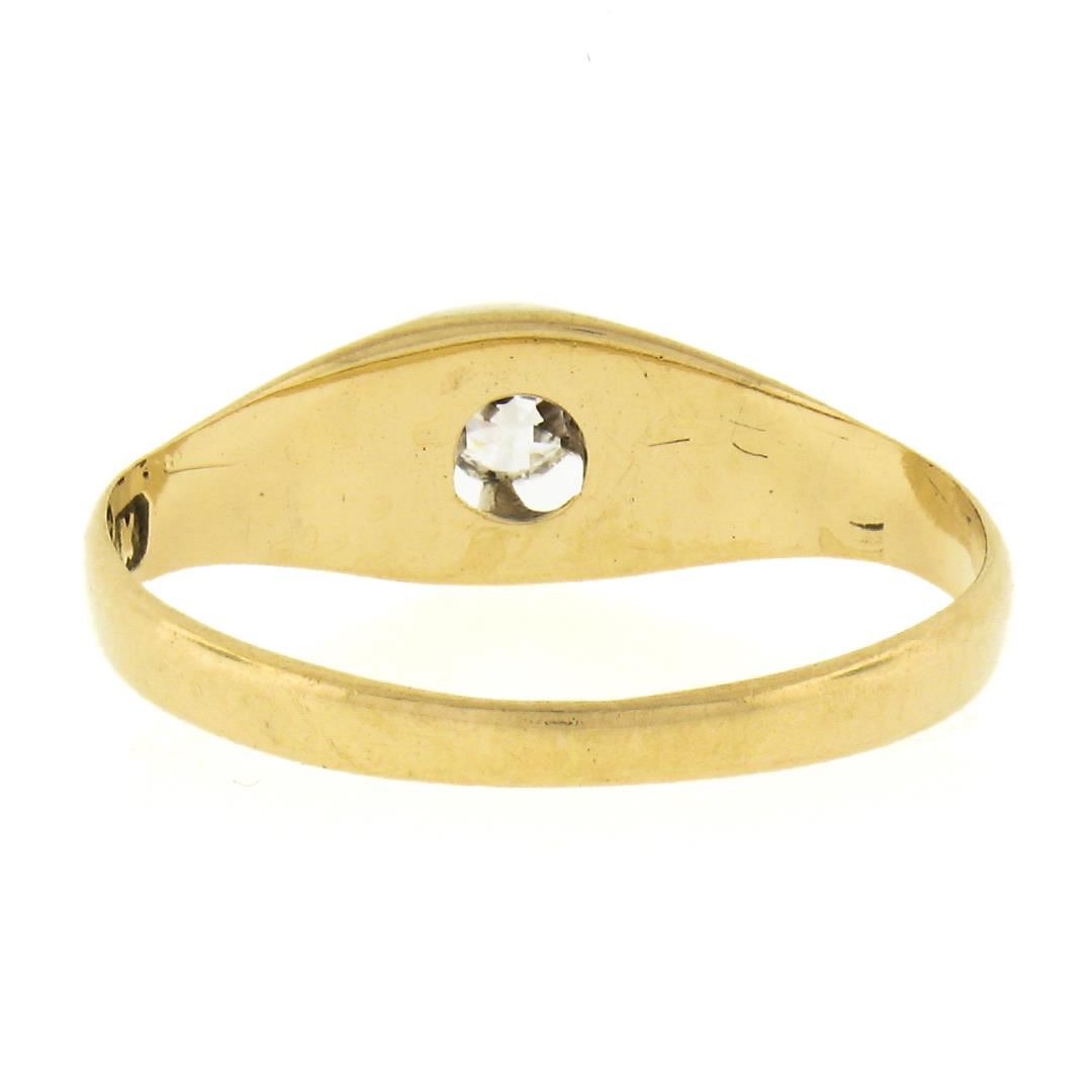 An antique solid 14k yellow gold ring, with 1 old european cut natural diamond (G - VS2 ; 0.14ct). The ring is size 5.5, weighs a total of 1.76 grams, and measures 5.65mm wide.