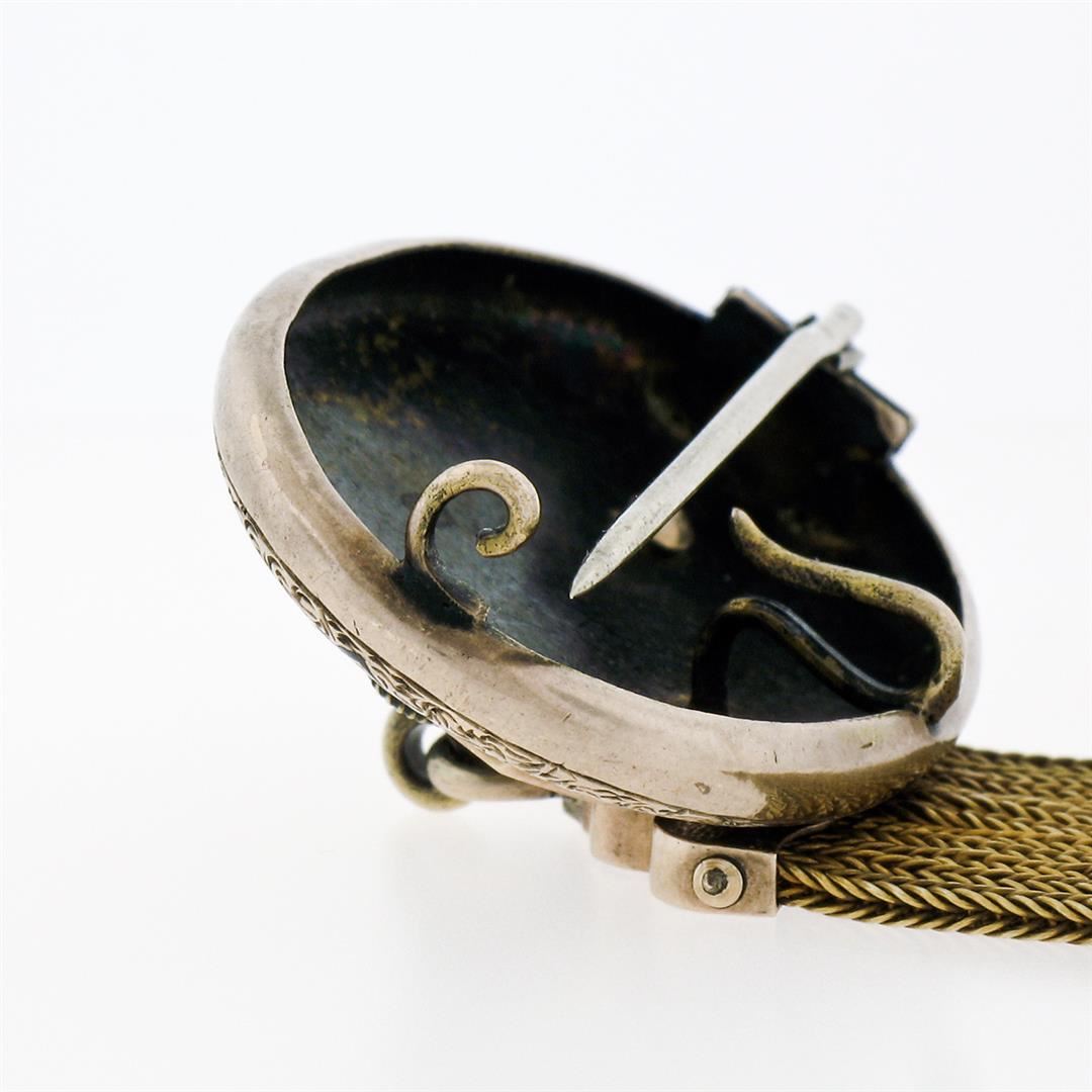 Antique Victorian 14K Gold Black Enamel Leaf Etched Tassel Dangle Brooch Pin