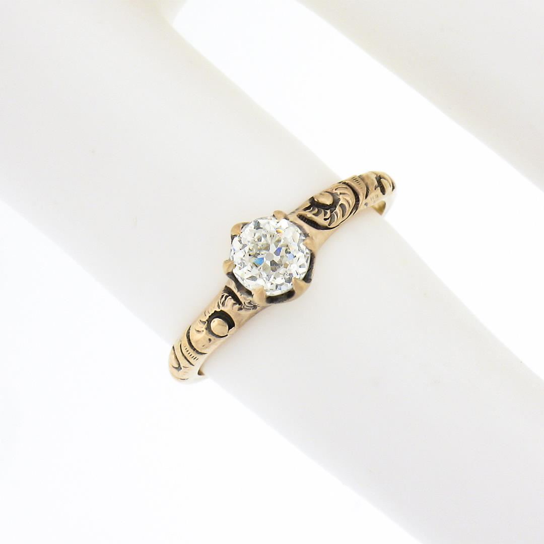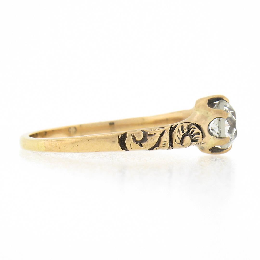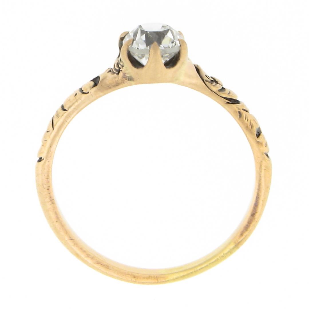 An antique solid 14k yellow gold solitaire ring, with 1 GIA graded 1 old European cut natural diamond (G - SI2 ; 0.46ct). The ring is size 3.5, weighs a total of 1.20 grams, and measures 5.45mm wide. Comes with all original relevant certifications.