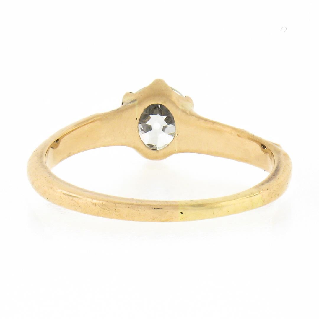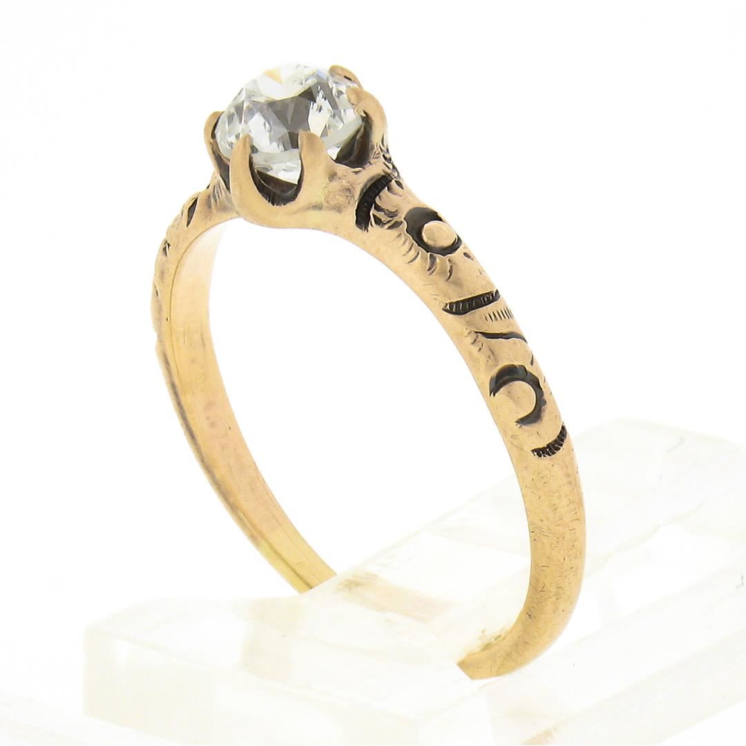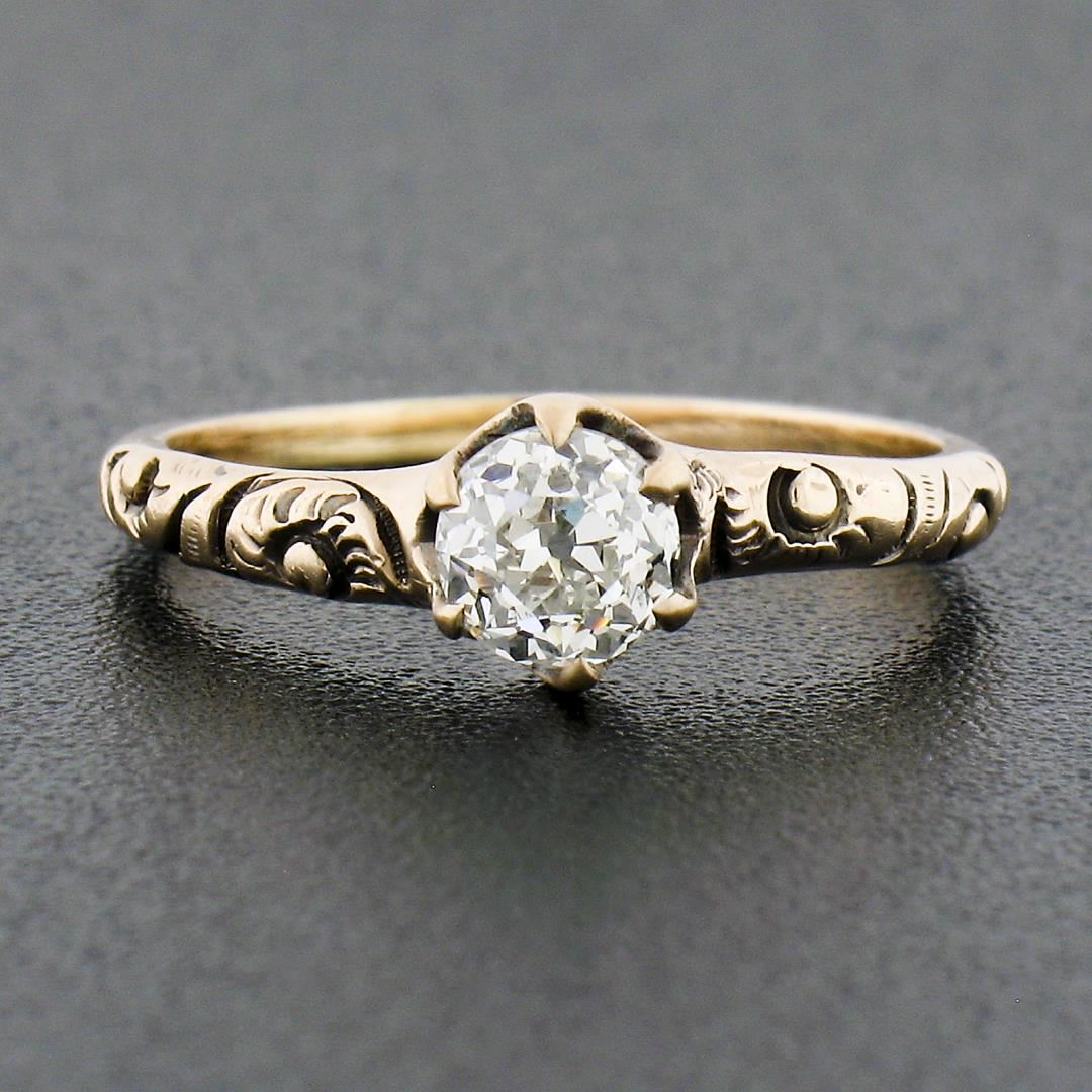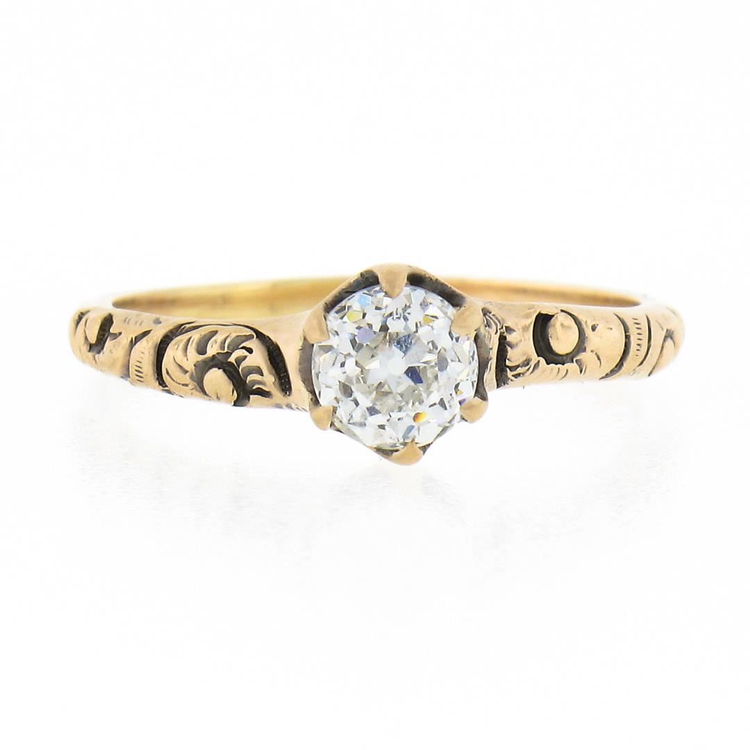 An antique solid 14k yellow gold solitaire ring, with 1 GIA graded 1 old European cut natural diamond (G - SI2 ; 0.46ct). The ring is size 3.5, weighs a total of 1.20 grams, and measures 5.45mm wide. Comes with all original relevant certifications.