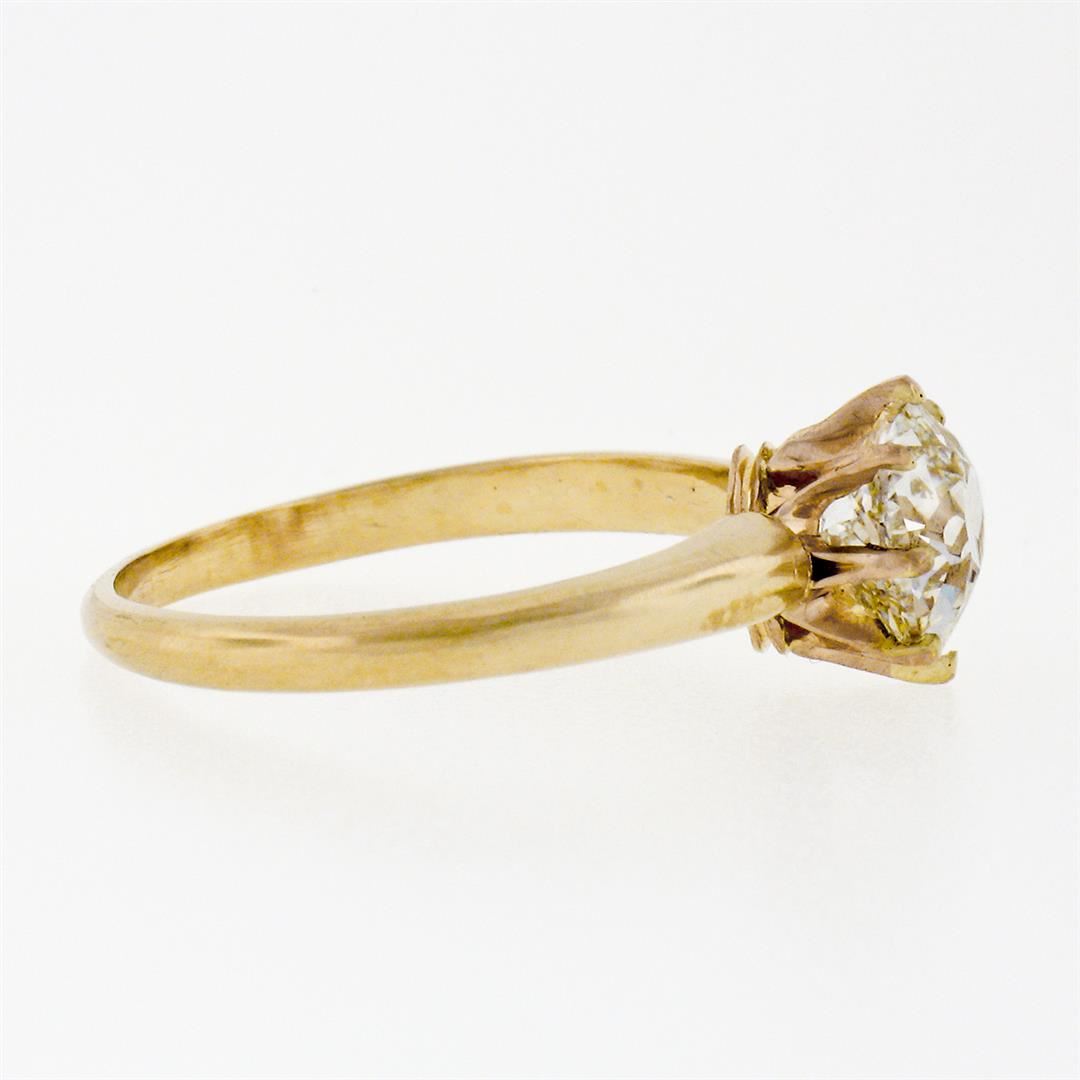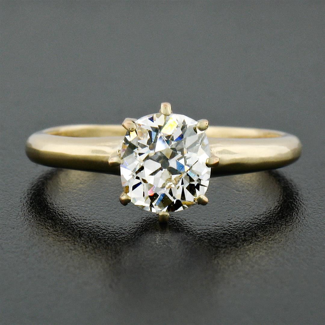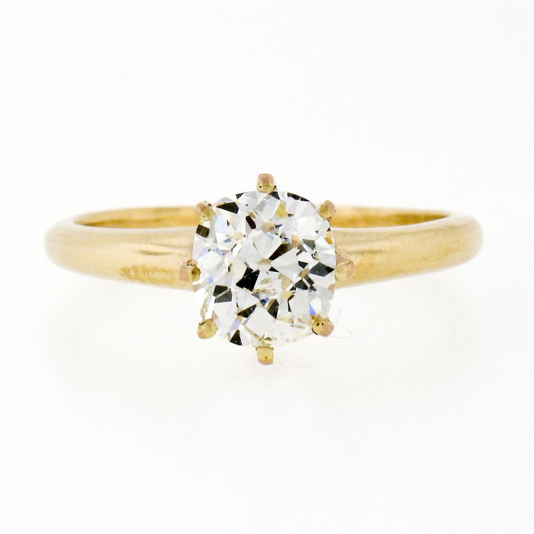 A Victorian era solid 14k yellow gold engagement ring with a GIA certified old mine cut natural diamond (I - VS1; 1.41ct). The ring is size 7.0, weighs a total of 2.57 grams, and measures 8.5mm wide. Comes with all original relevant certifications.