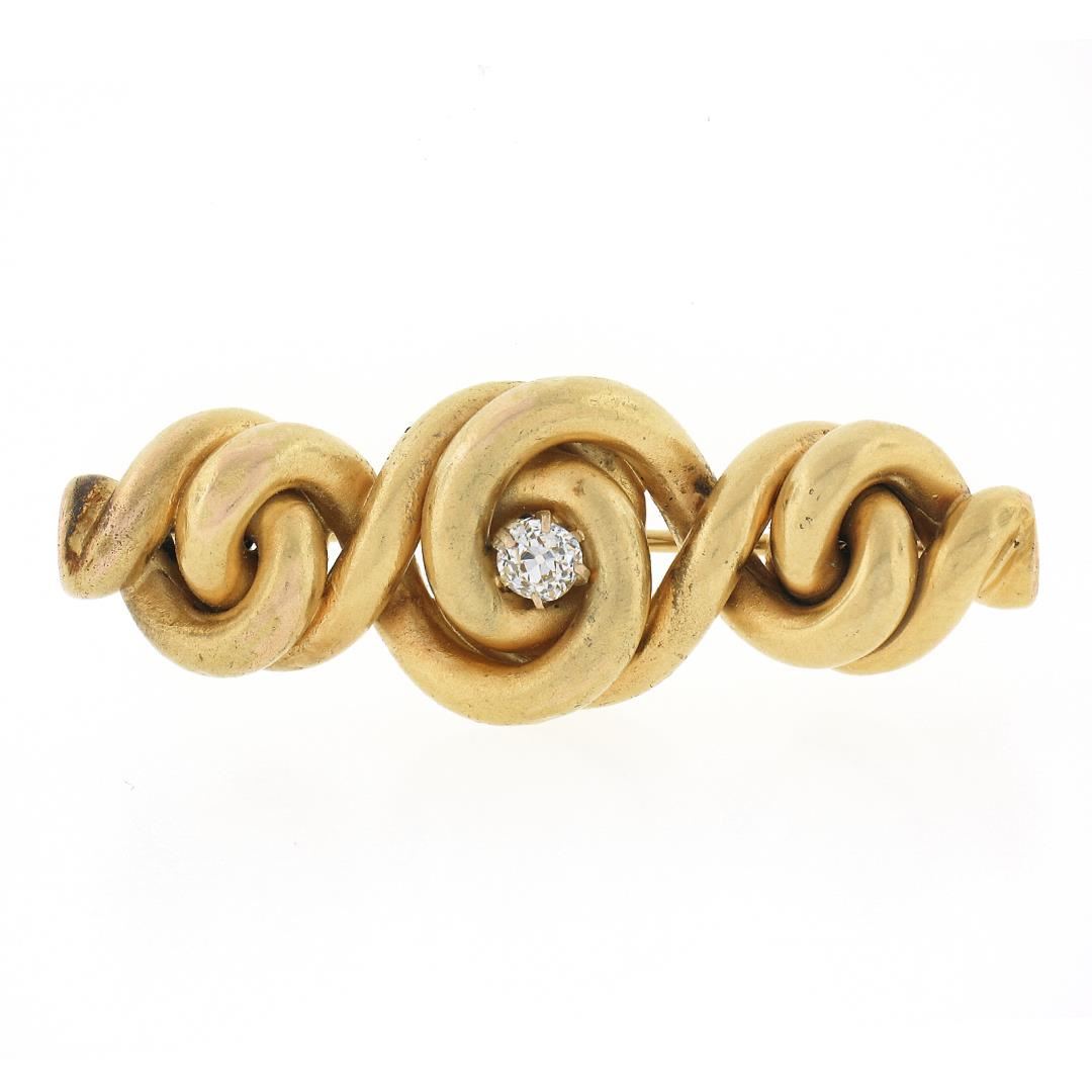 An antique solid 14k yellow gold bar brooch, with 1 old mine cut natural diamond (G - VS2 ; 0.25ct). Measures 15.40x43.50mm and weighs a total of 7.01 grams.