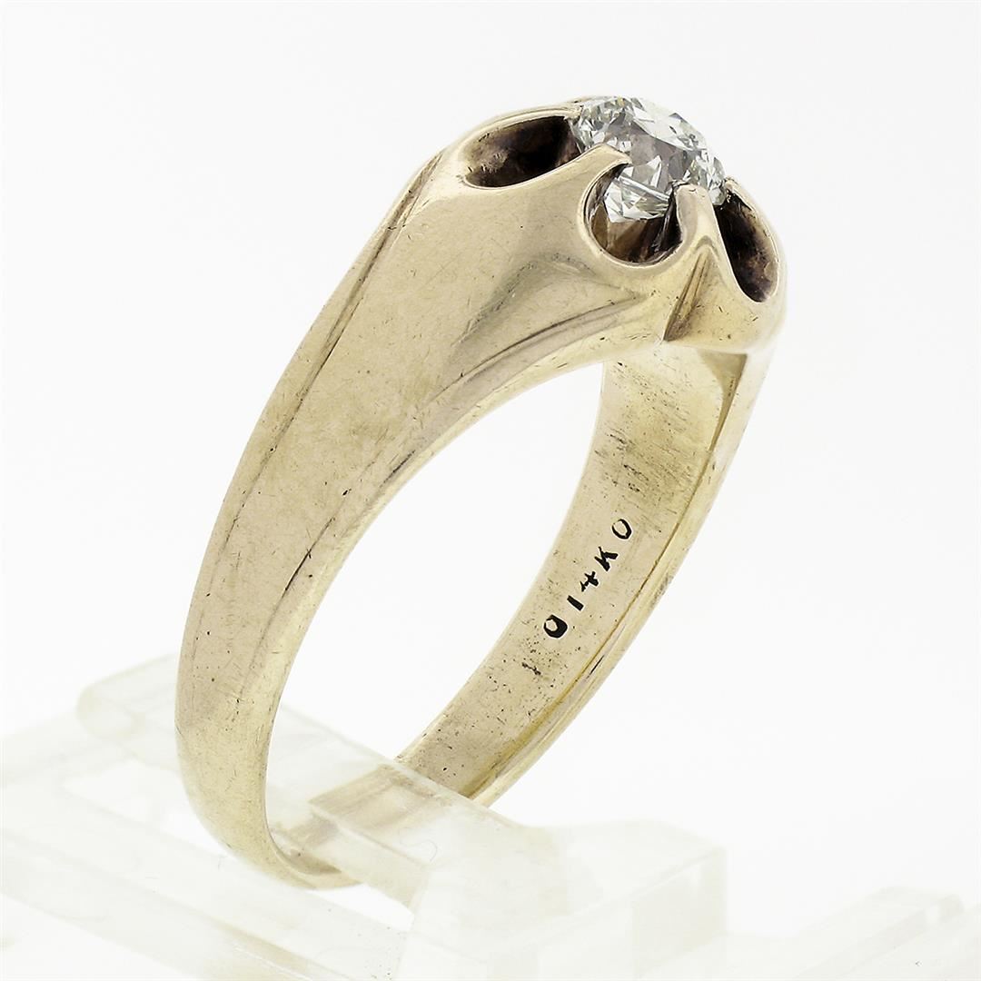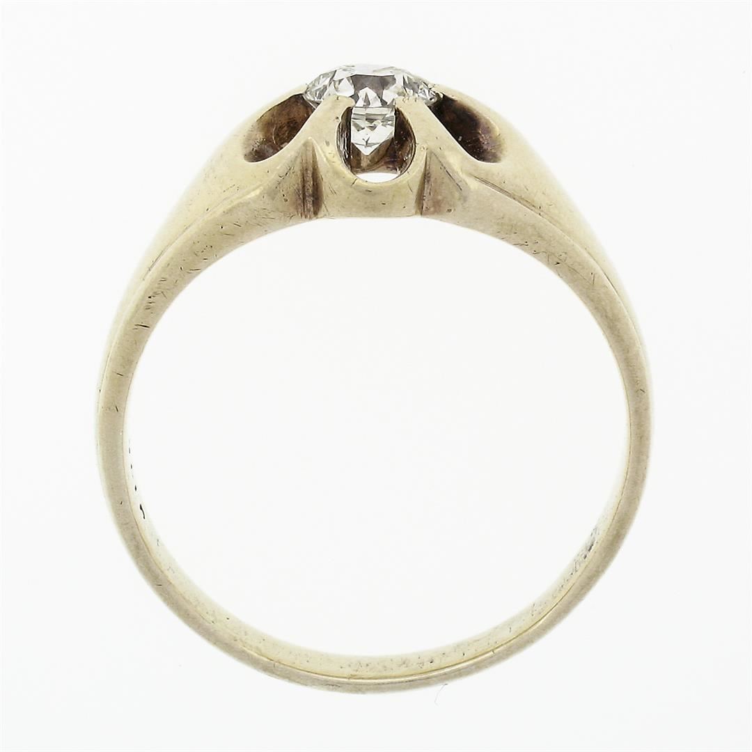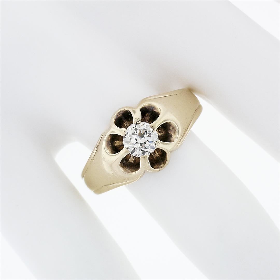 An antique victorian solid 14k yellow gold belcher flower band ring, with 1 old european cut naural diamond (VS2 ; H - 0.57ctw). The ring is size 10, weighs a total of 7.17 grams, and measures 11.3mm wide.