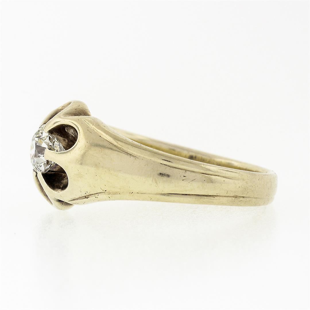 An antique victorian solid 14k yellow gold belcher flower band ring, with 1 old european cut naural diamond (VS2 ; H - 0.57ctw). The ring is size 10, weighs a total of 7.17 grams, and measures 11.3mm wide.