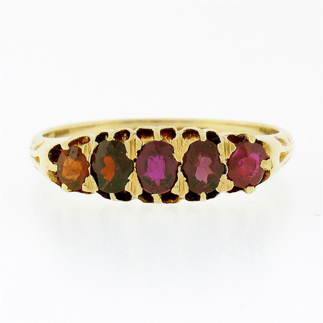 Antique Victorian 18K Gold 1.0 ctw Graduating Old Cut Red Spinel 5 Stone Band Ri