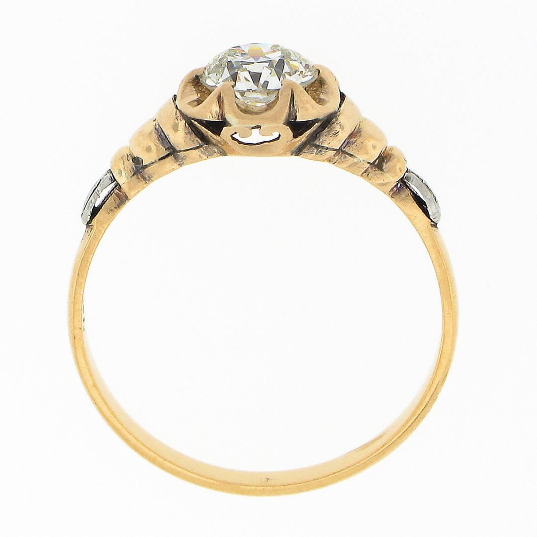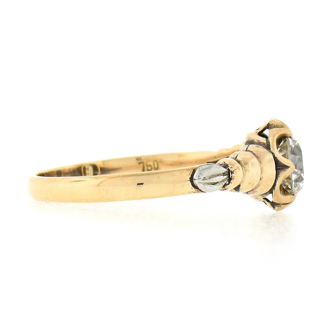 An antique solid 18k rosy yellow & white gold engagement ring, with 1 GIA graded old European cut natural diamond (K - SI2 ; 0.75ct ). The ring is size 7.0, weighs a total of 2.36 grams, and measures 7.75mm wide. Comes with all original relevant certifications.