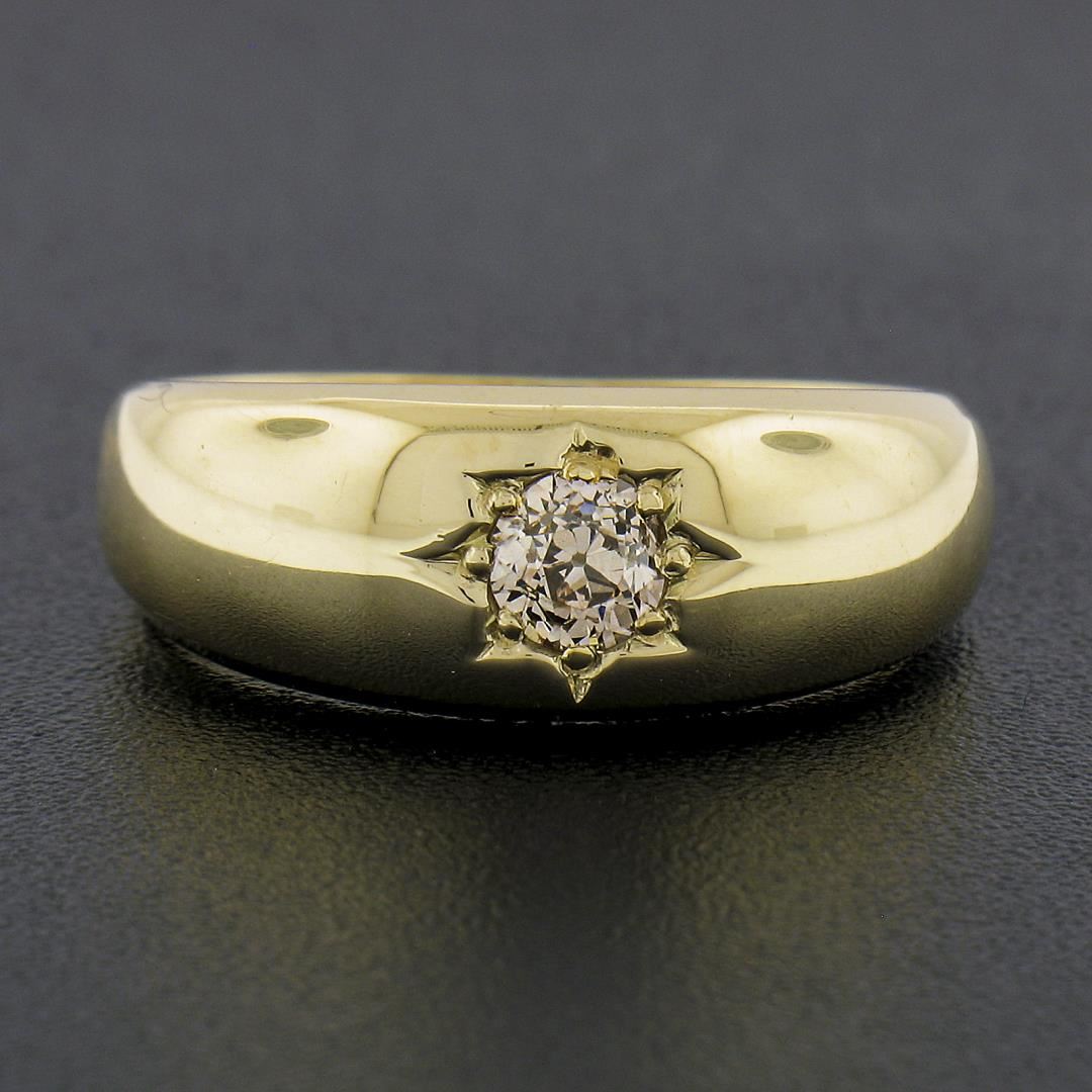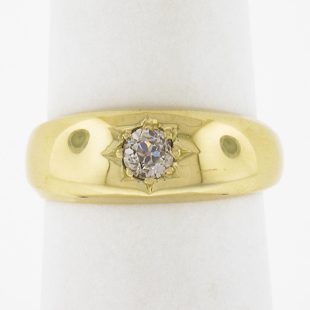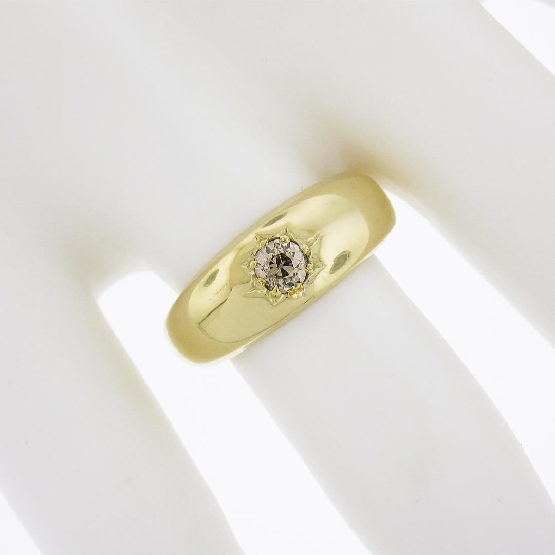 An antique solid 18k yellow gold band ring, with 1 GIA graded old european cut natural diamond (Fancy Pinkish Brown Color - I2 ; 0.26ct). The ring is size 6.5, weighs a total of 5.89 grams, and measures 7.4mm wide. Comes with all original relevant certifications.