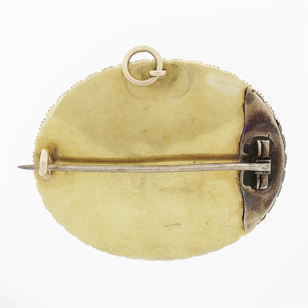 Antique Victorian 18k Gold Pearl & Black Enamel Oval Mourning Brooch Pin Pendant