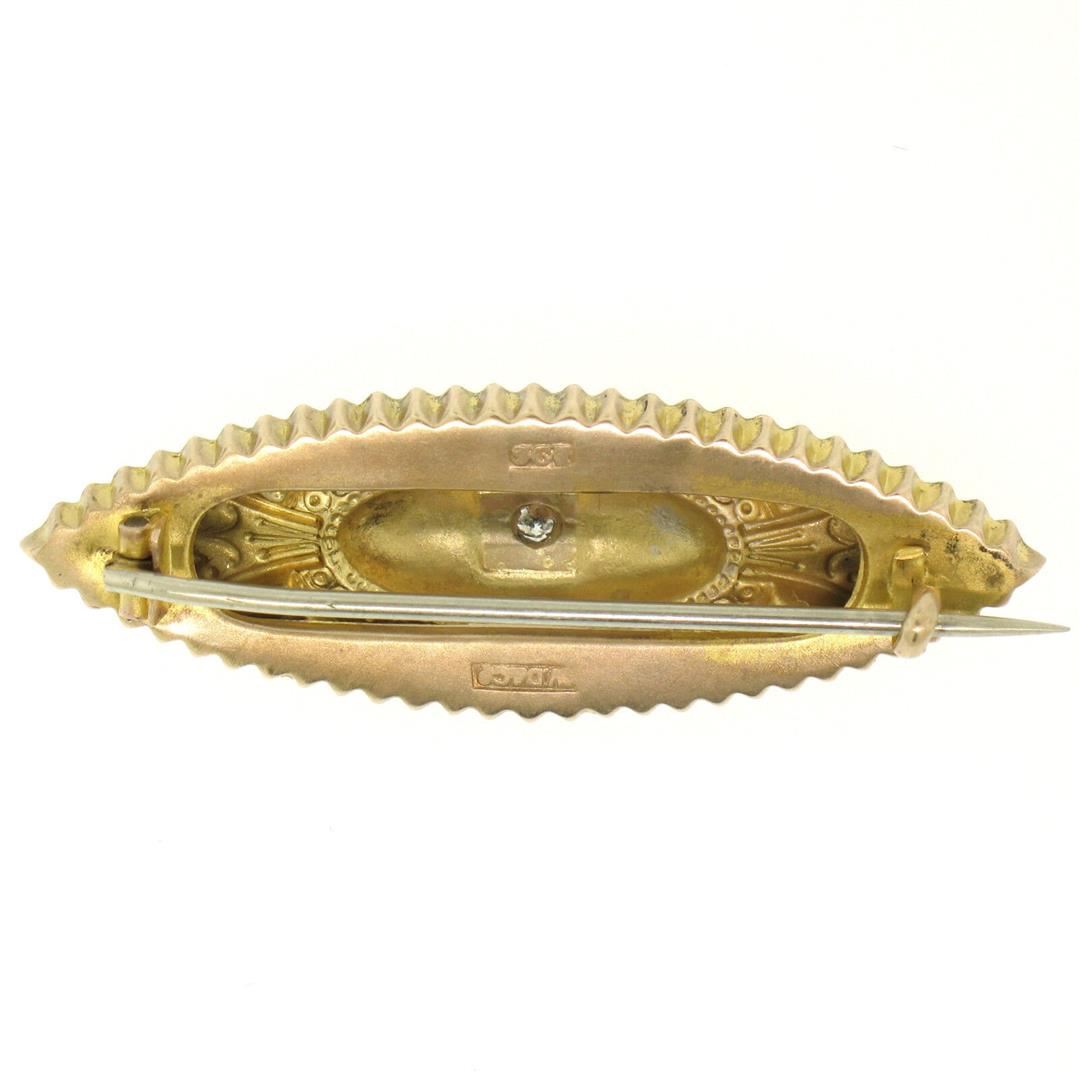An antique victorian solid 9k yellow gold featuring 1 old mine cut natural diamond (G - VS2 ; 0.10ct). Measures 16.25x46.5mm and weighs a total of 2.80 grams.