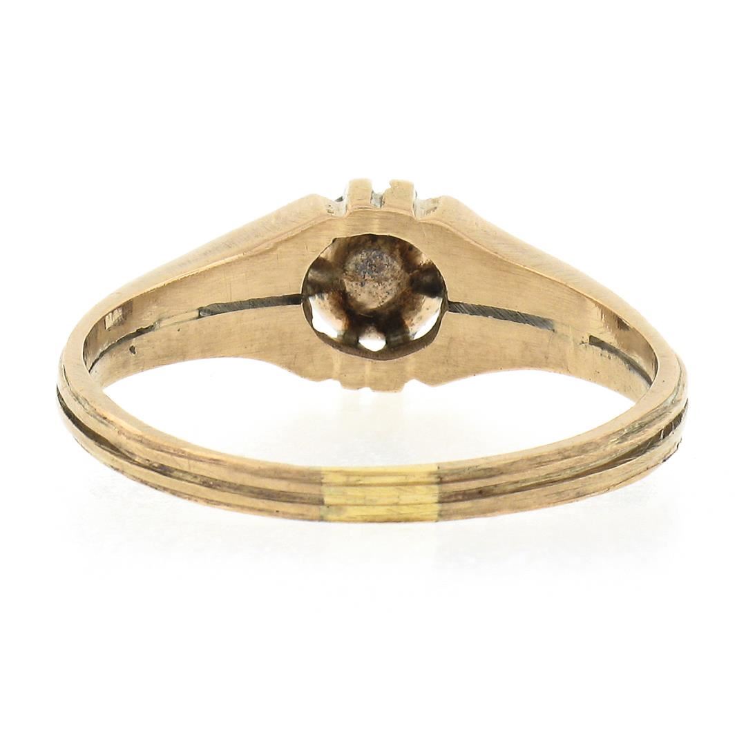 Antique Victorian Rosy Yellow Gold 5mm Rose Cut Diamond Bezel Solitaire Ring