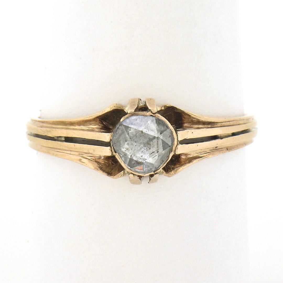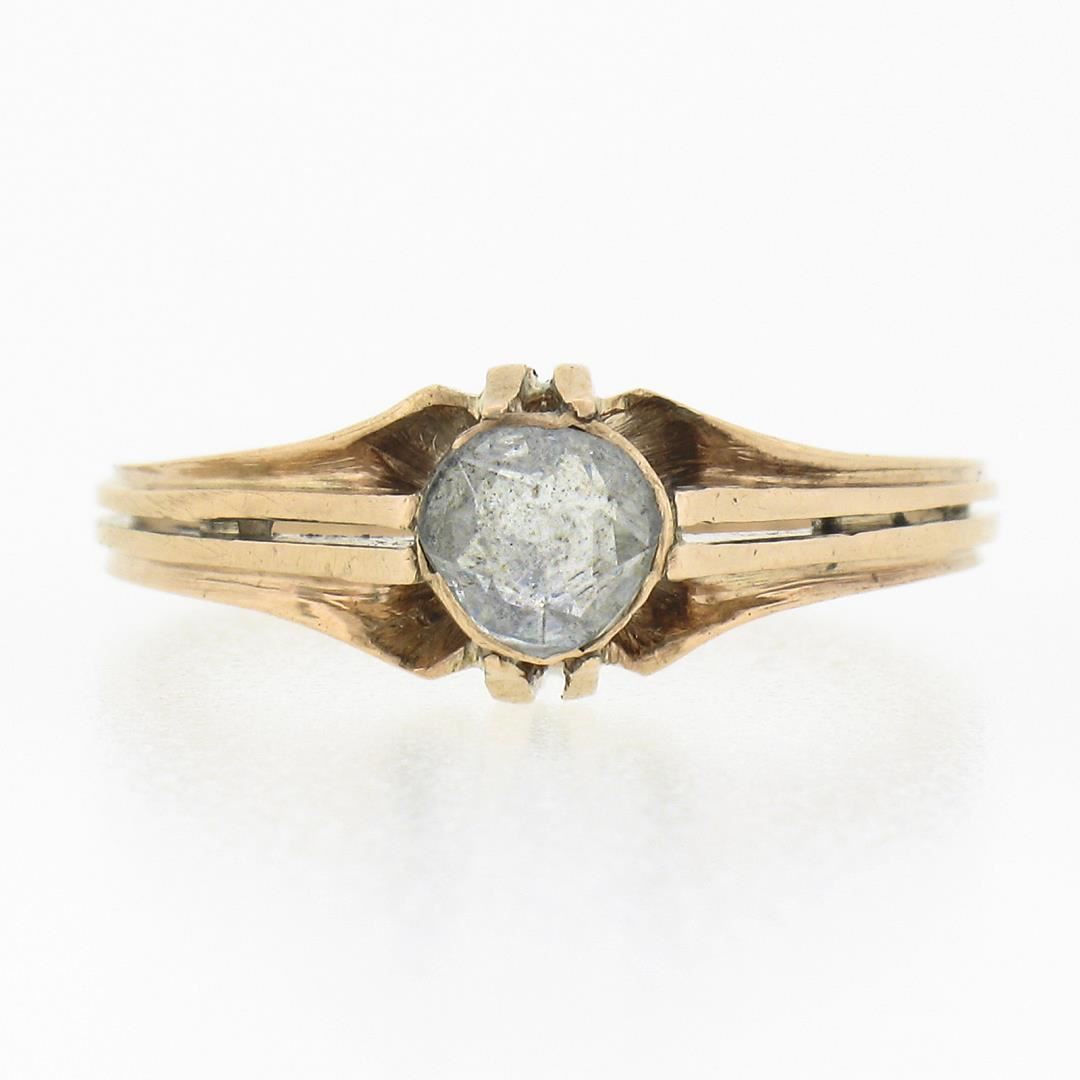 Antique Victorian Rosy Yellow Gold 5mm Rose Cut Diamond Bezel Solitaire Ring