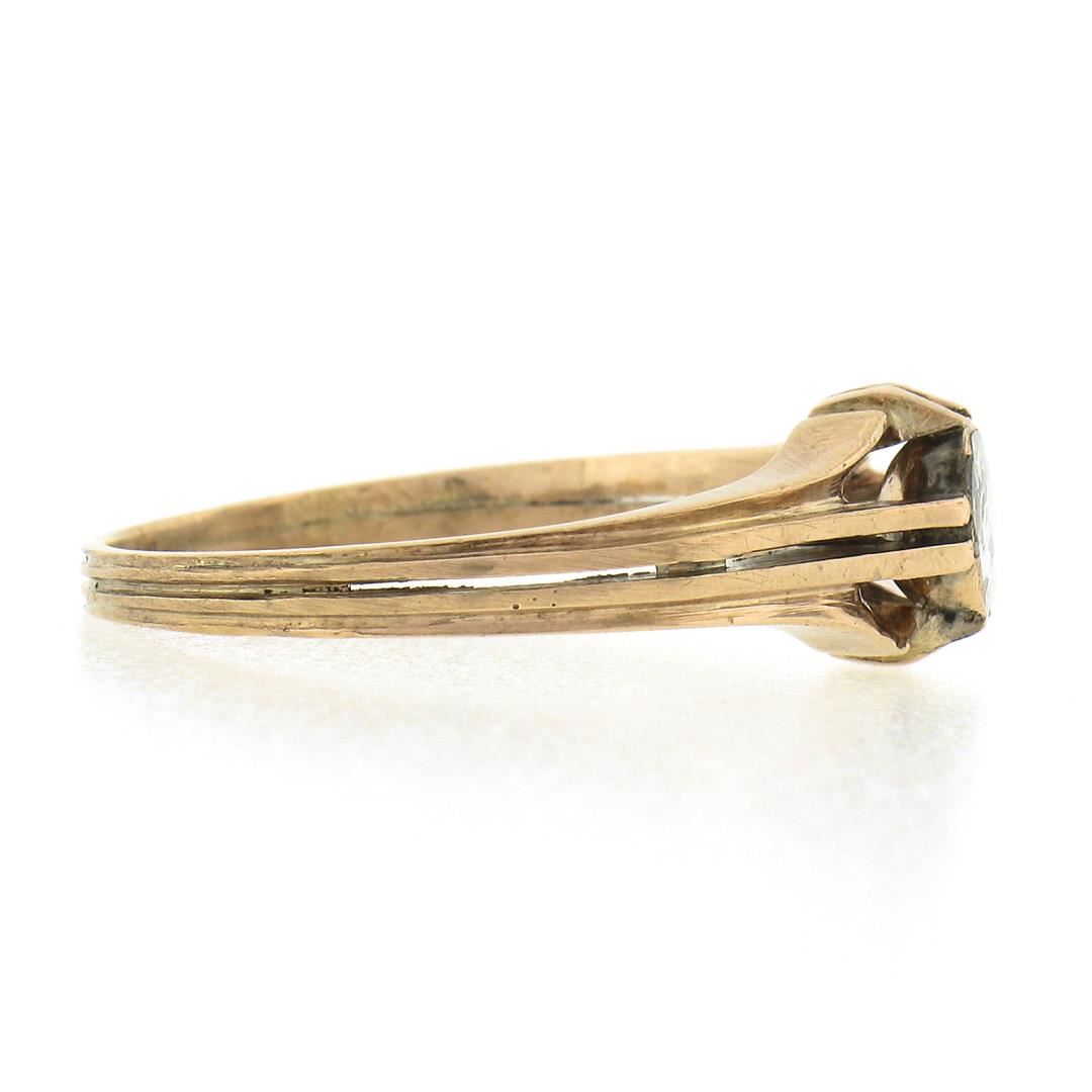 Antique Victorian Rosy Yellow Gold 5mm Rose Cut Diamond Bezel Solitaire Ring