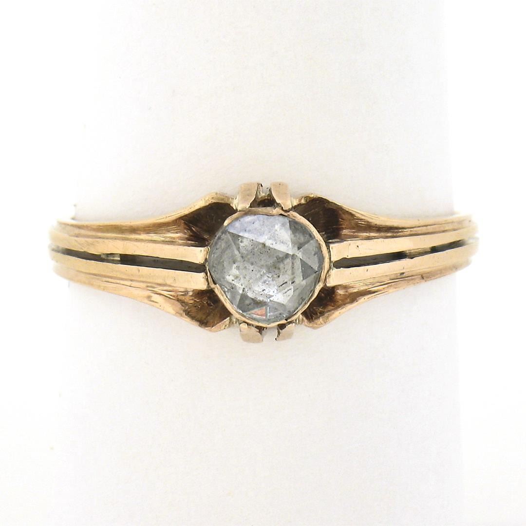 Antique Victorian Rosy Yellow Gold 5mm Rose Cut Diamond Bezel Solitaire Ring