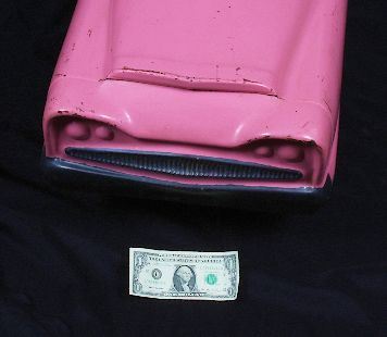 Antique Vintage Pink Pedal Car c.1930-50's. Awesome Collector's Item. As-Is Condition. Measures 3' long, 15" wide and weighs 20lbs. Dollar bill in photo is to demonstrate size of the pedal car, it is not included.