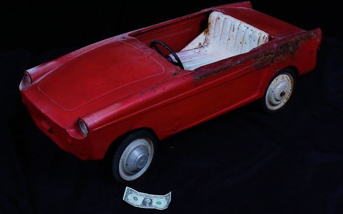 Antique Vintage Red Pedal Car c.1930-50's. Awesome Collector's Item. As-Is Condition. Measures 42" long, 18" wide and weighs 25lbs. Dollar bill in photo is to demonstrate size of the pedal car, it is not included.