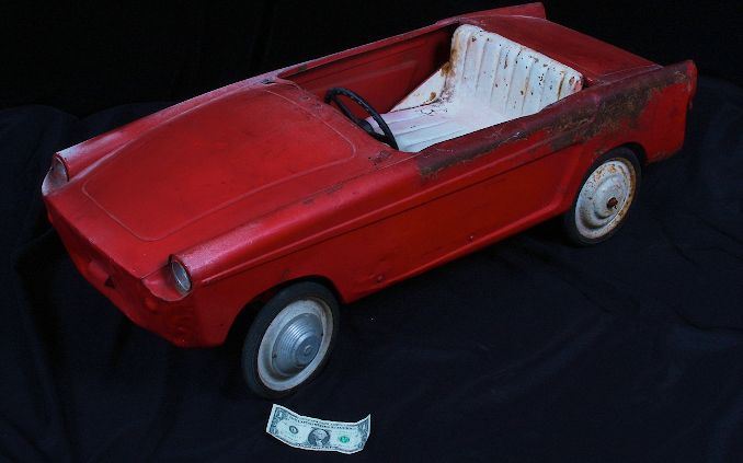 Antique Vintage Red Pedal Car c.1930-50's. Awesome Collector's Item. As-Is Condition. Measures 42" long, 18" wide and weighs 25lbs. Dollar bill in photo is to demonstrate size of the pedal car, it is not included.