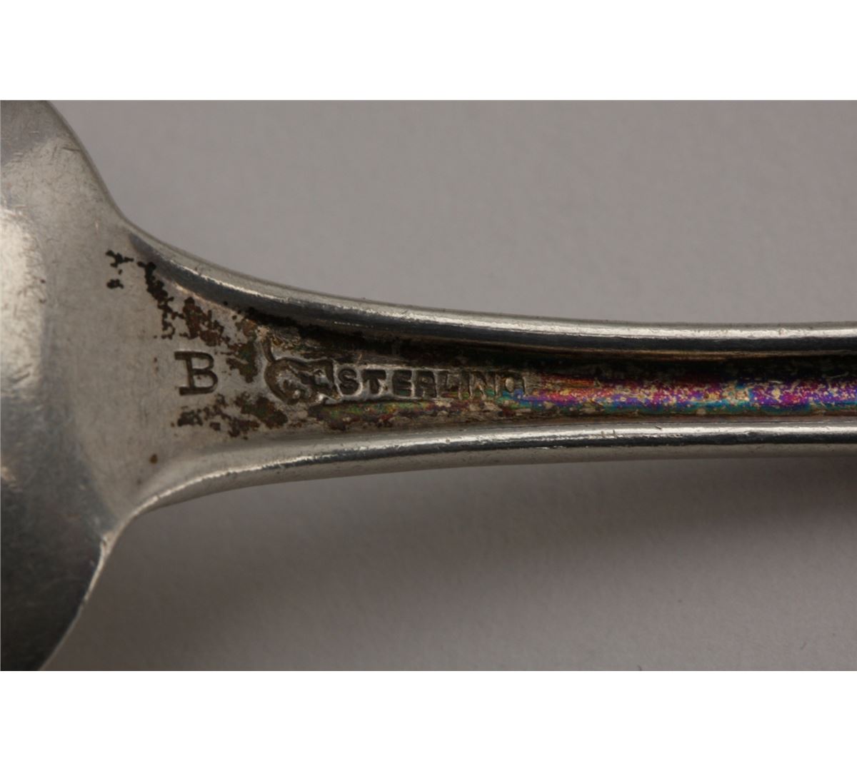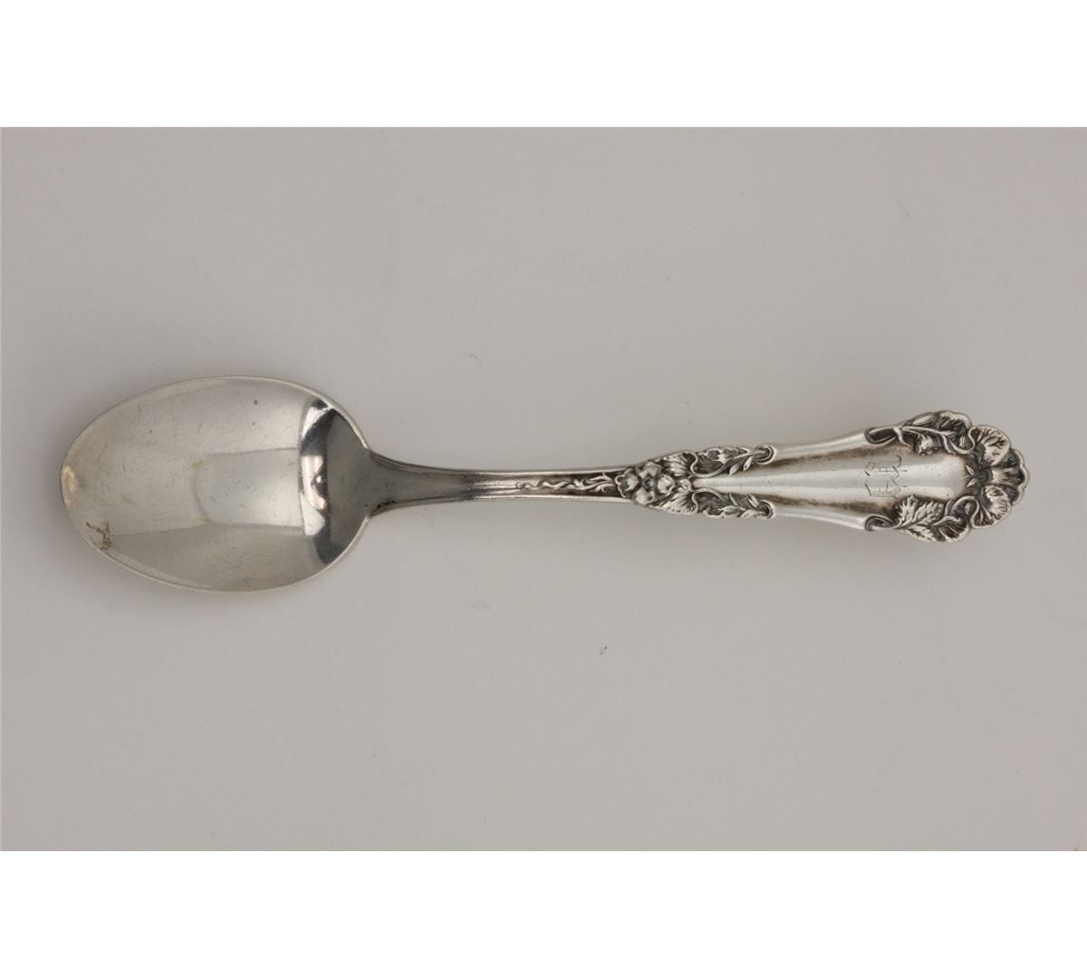 One antique Wilcox and Evertsen sterling silver art nouveau "Marcell" pattern 5 inch long teaspoon with period monogram "W" or "M".